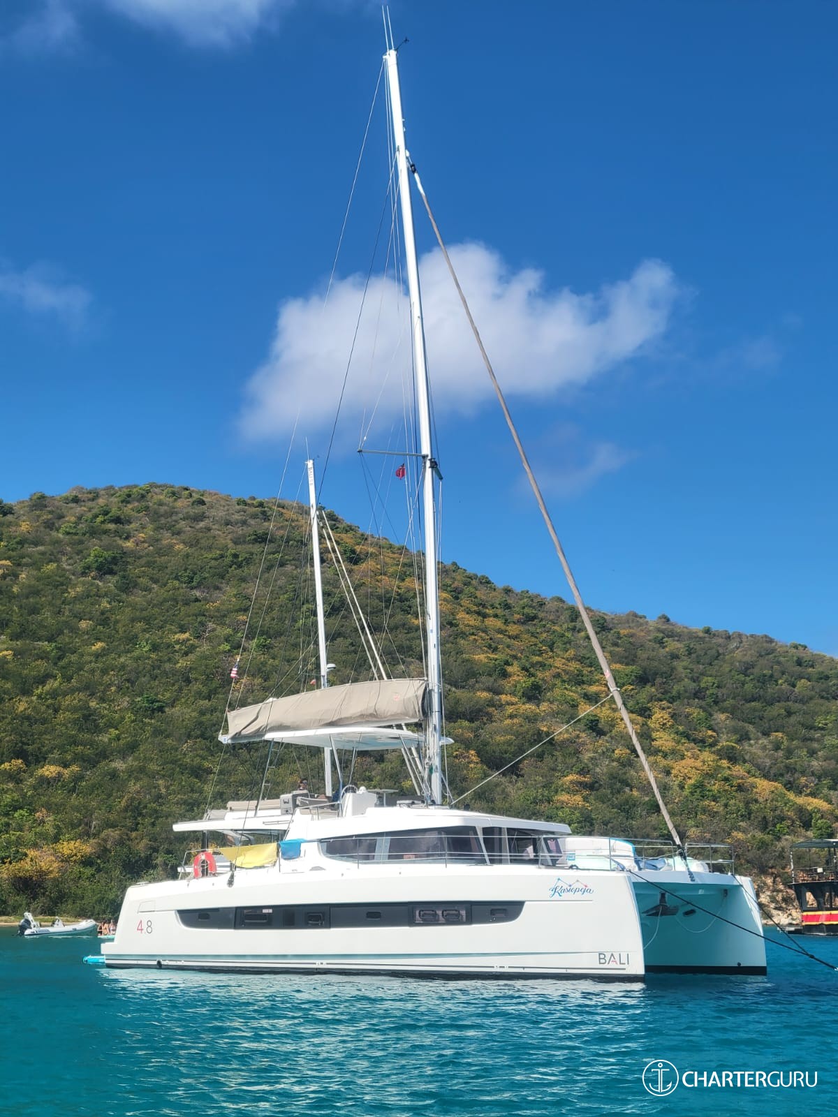 KASIOPEJA is a 2023 48’ Bali catamaran that delivers Bali’s signature “wide-open” lifestyle in a perfectly charter-ready size. Sleeps 8 in 4 Queen cabins—each with a private ensuite—so every guest gets true comfort and privacy. A true highlight is Bali’s tilt-and-turn rear salon wall that opens up to instantly merge indoor and outdoor living, creating one seamless entertaining space. Add the solid foredeck with expansive seating, a bright lounge deck made for slow afternoons, and a flybridge with table seating and panoramic views, and you’ve got nonstop “best seat on the boat” energy. Modern galley, full-size fridge, and smart design throughout keep everything effortless. Airy, social, and unforgettable—KASIOPEJA is Bali living at its best.