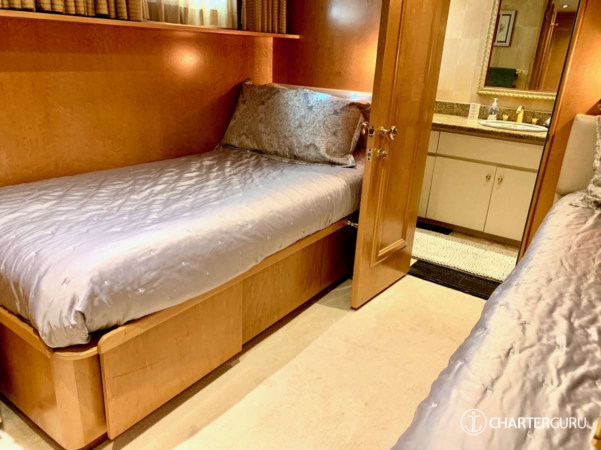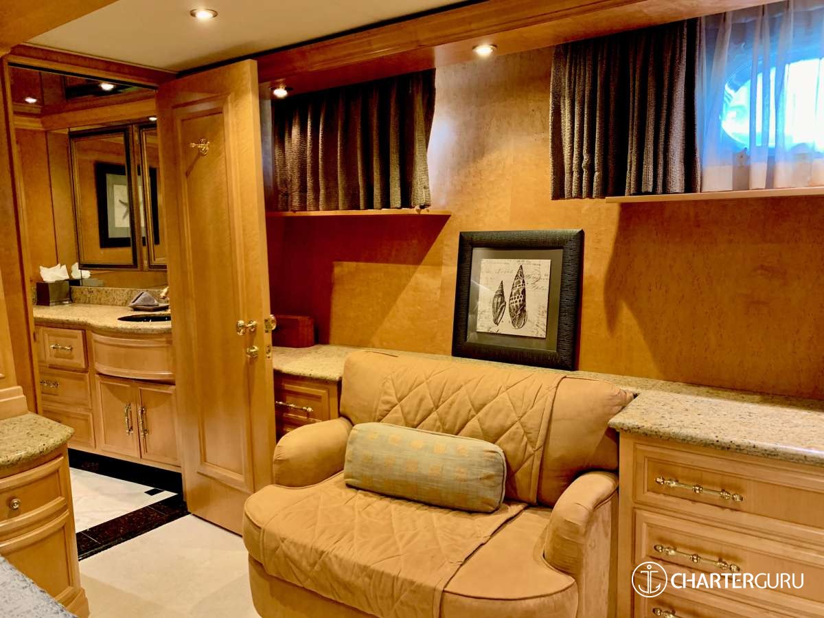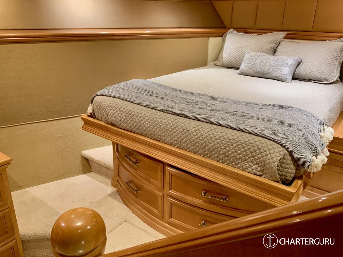 Lady Lex accommodates up to 8 guests in 4 ensuite staterooms, including a full-beam primary suite, a forward VIP with raised queen bed, a guest queen and one twin. Classic styling and beautiful furnishings featured throughout create a plush, relaxing atmosphere.