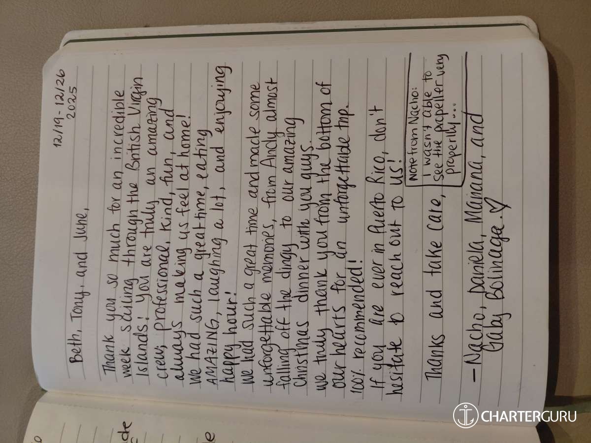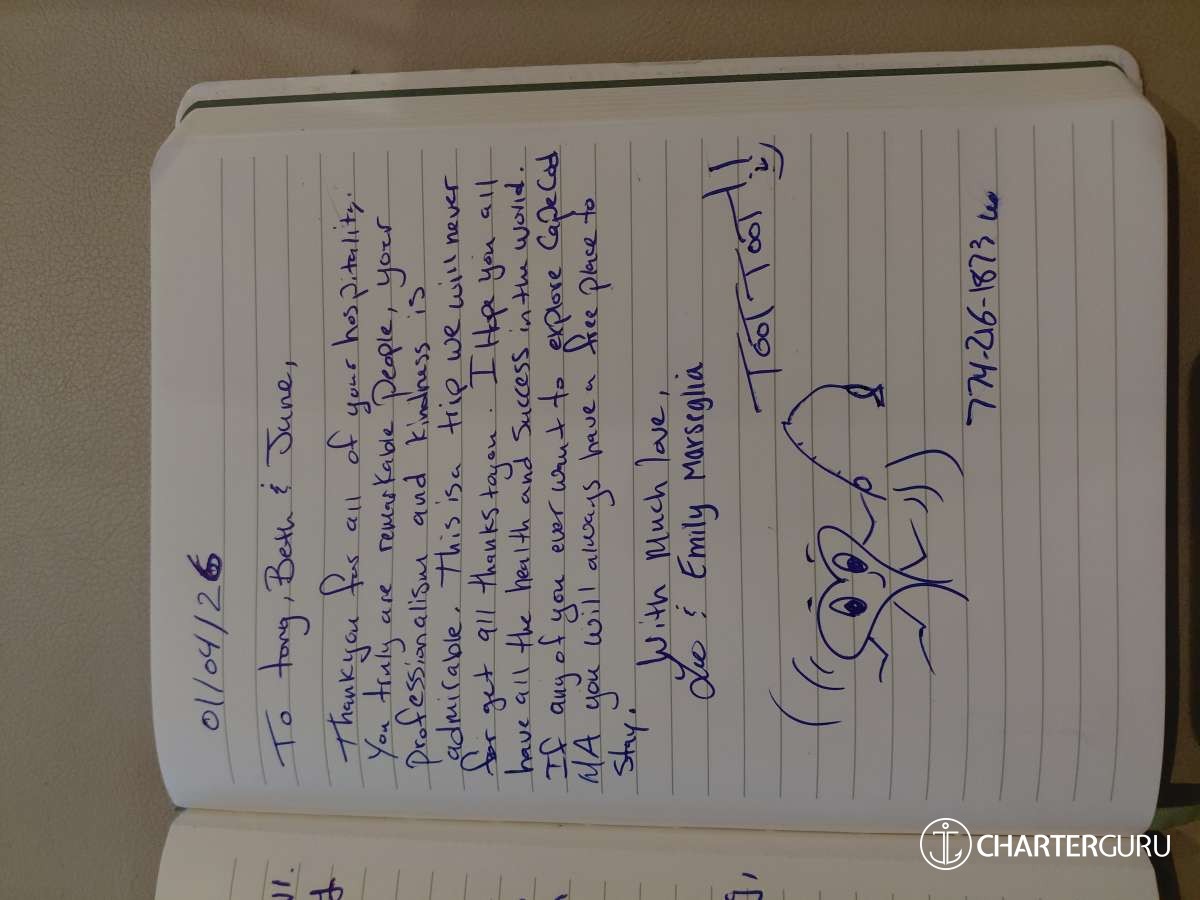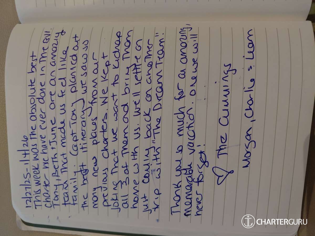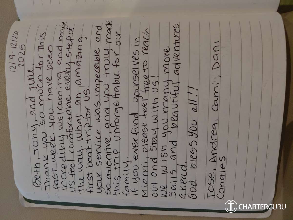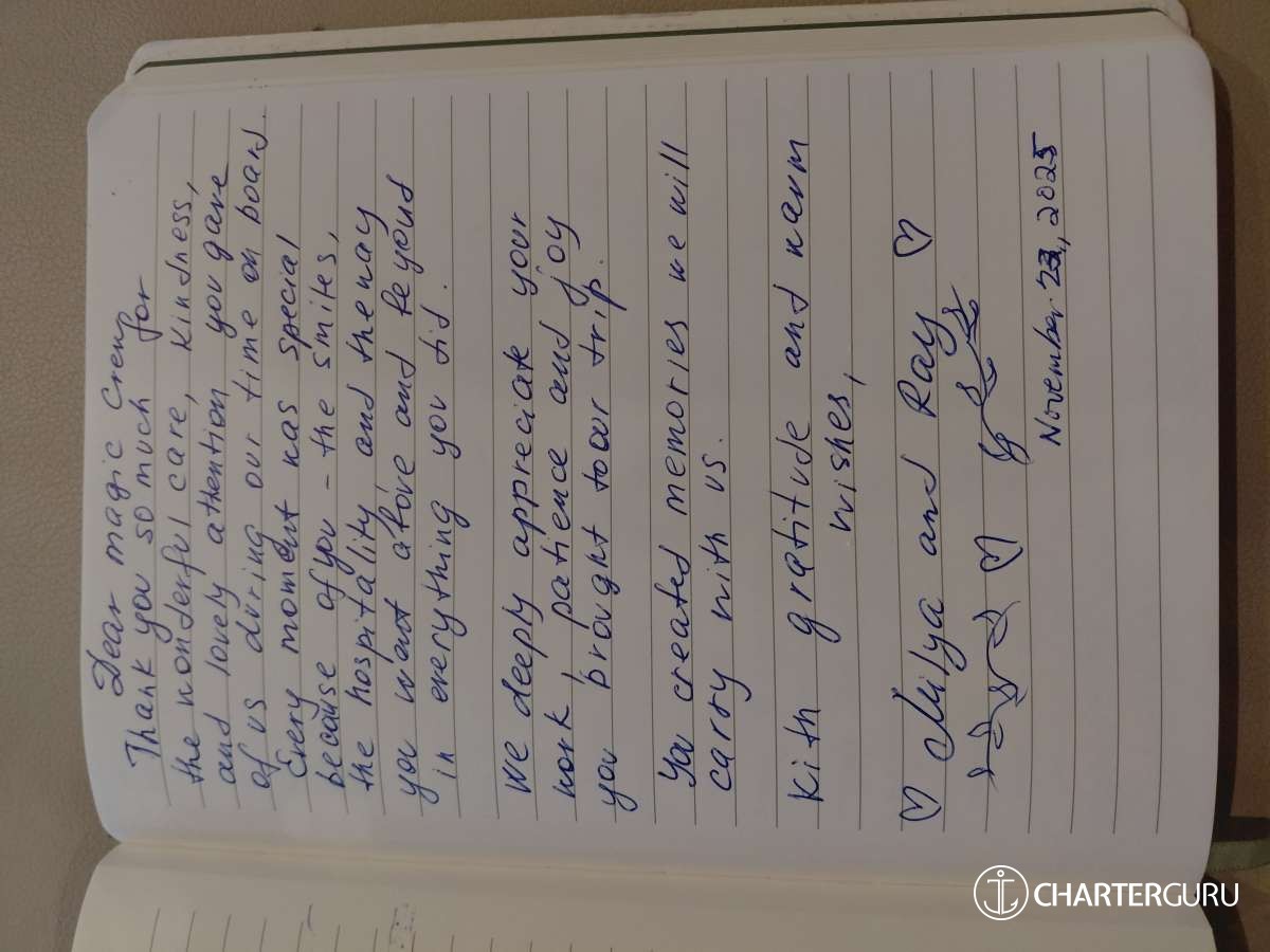 We deeply appreciate your work, patience and joy you brought to our trip.
