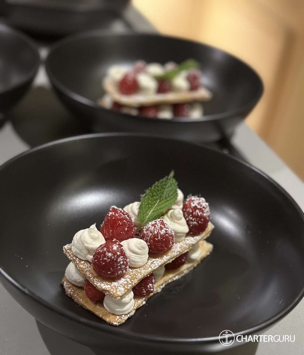 Jamison, meal time was virtually edible art! We could not wait each day to see, take photos, & eat your artistically displayed platters of fruits, seafood boils, cream sauces & main course masterpieces, warm cookies & dessert. We quickly learned our meals onboard always rivaled any BVI restaurant.