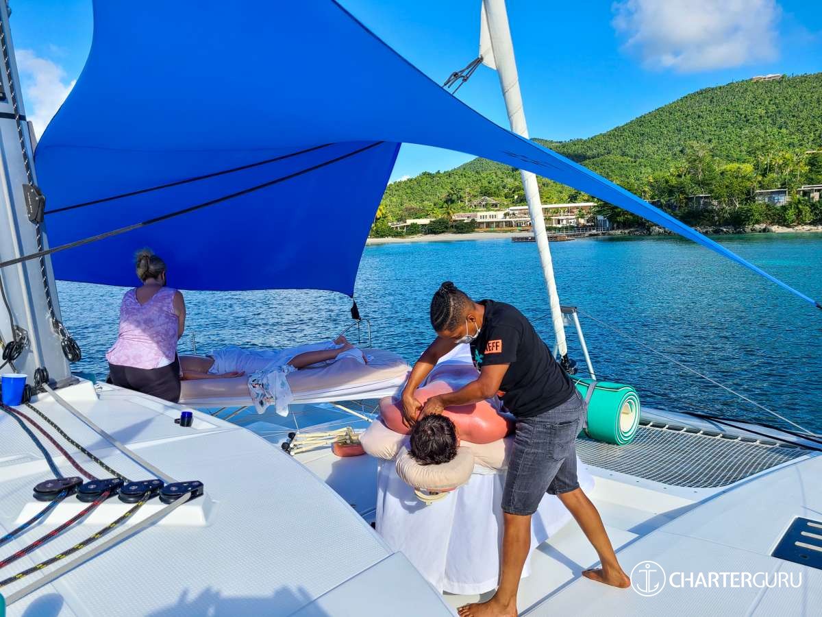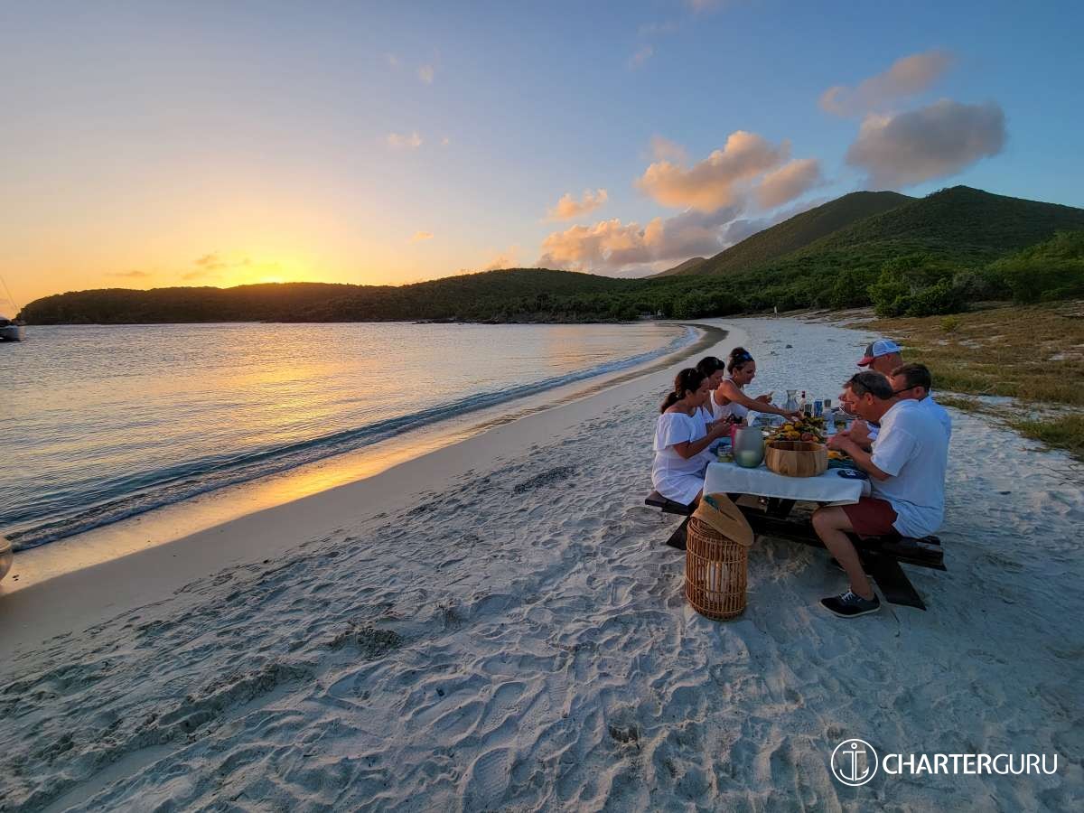 "What a fantastic week...and unexpected given the inauspicious start having our originally planned vacation canceled the morning of our flights. As it turned out, we were lucky. This past week was better than expected - good time with great friends, of course, but with a nicer boat and (I'm sure) a better crew. You two were great, organizing a fantastic itinerary with unexpected surprises - After Irma concert, massages, Lime Out, Zozos...and what wonderful food!!! Thank You!" - Heather and Lou