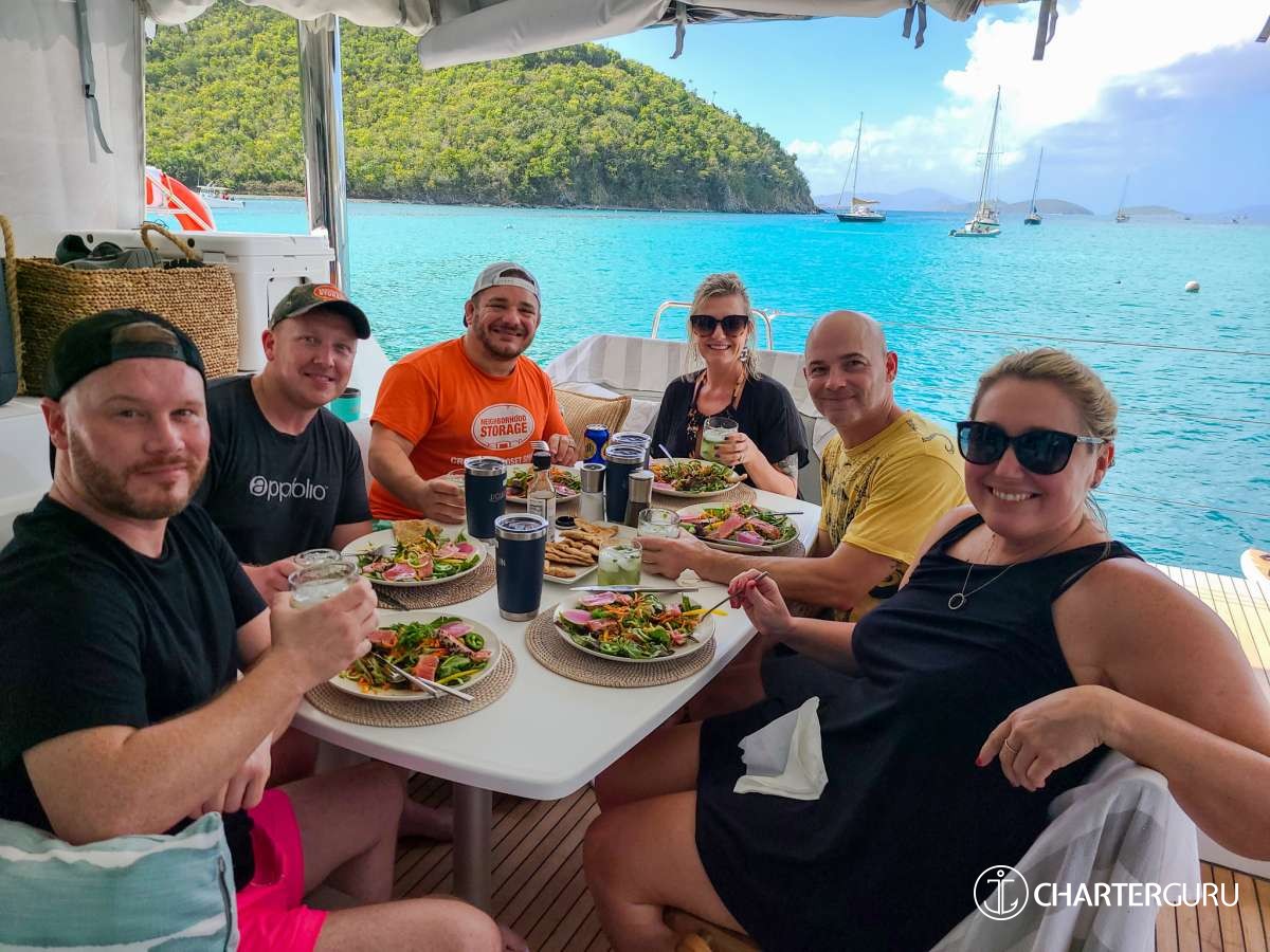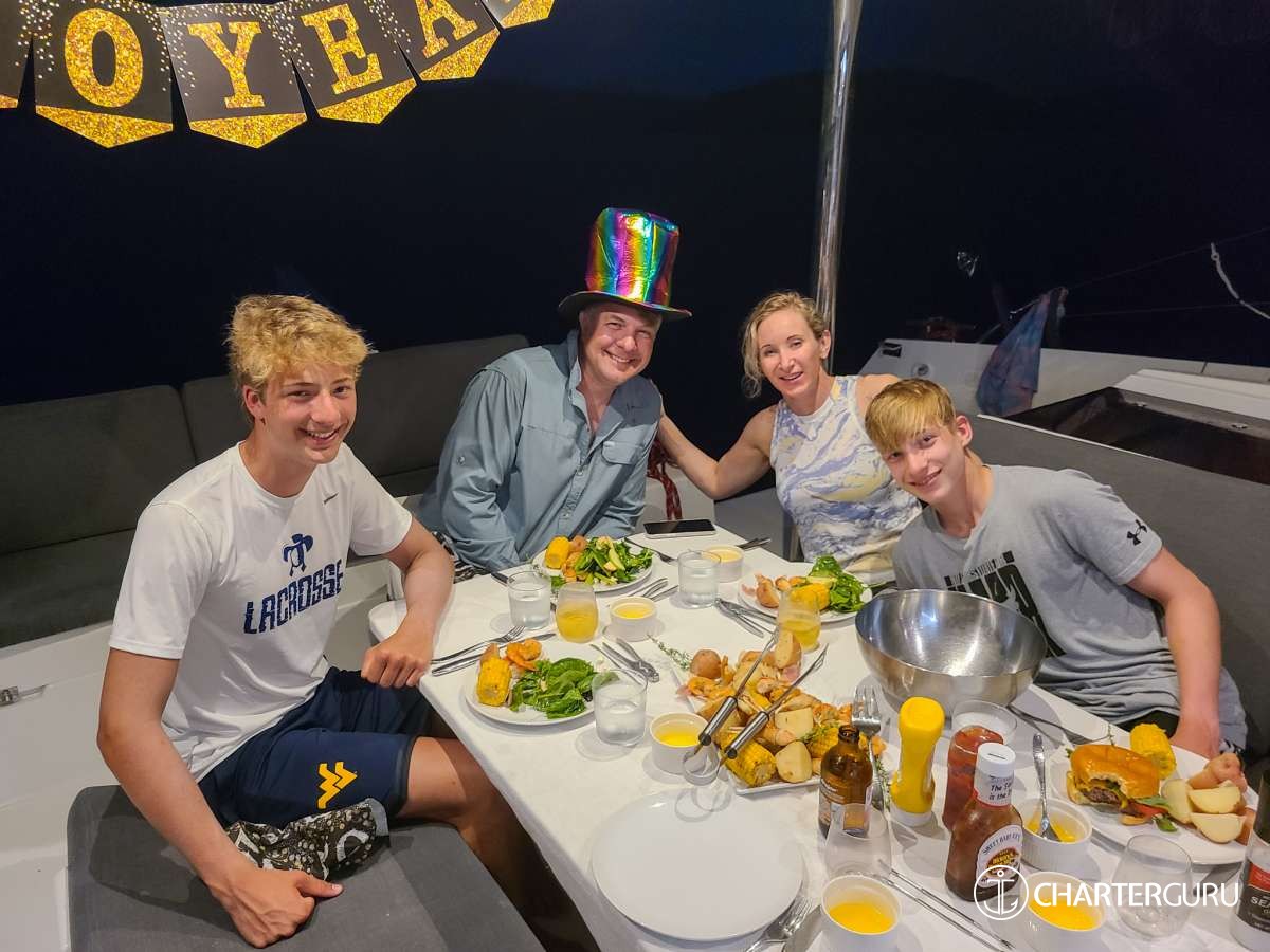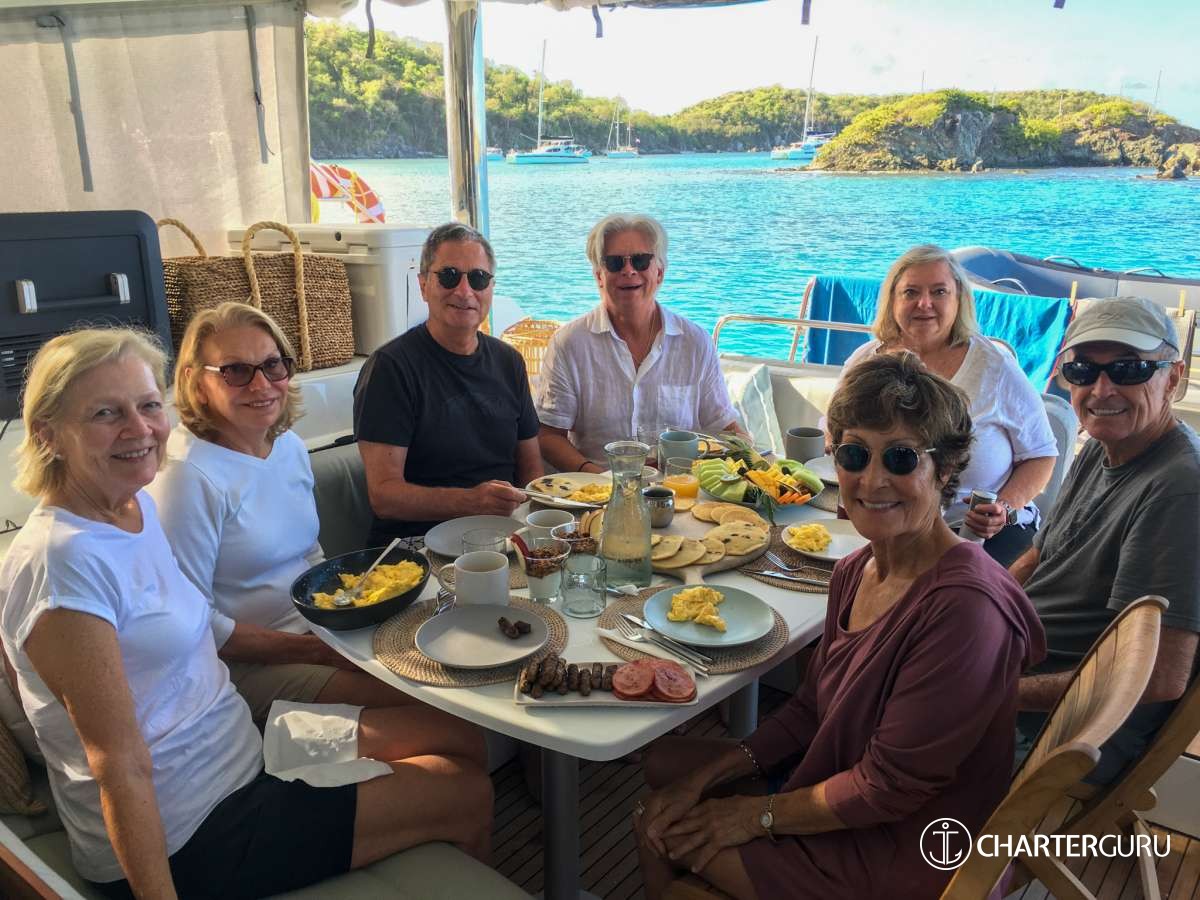 "We've traveled all over the world and this has to be our favorite vacation so far! Thank you for taking such good care of us! Michael was a great Captain from working the sails to navigating the dinghy in the dark. Casey - the meals, snacks, and drinks were way beyond our expectations - every meal was the "BEST MEAL" (seriously create a cookbook and make some side $$!!). Our trip has ended much too soon - let us know where you are in a year so we can book another charter with you! If you're ever in Atlanta, you have a place to stay so give us a call (same with Nashville! Come see us & we will take you to Broadway :)). God Bless you in all your adventures!"