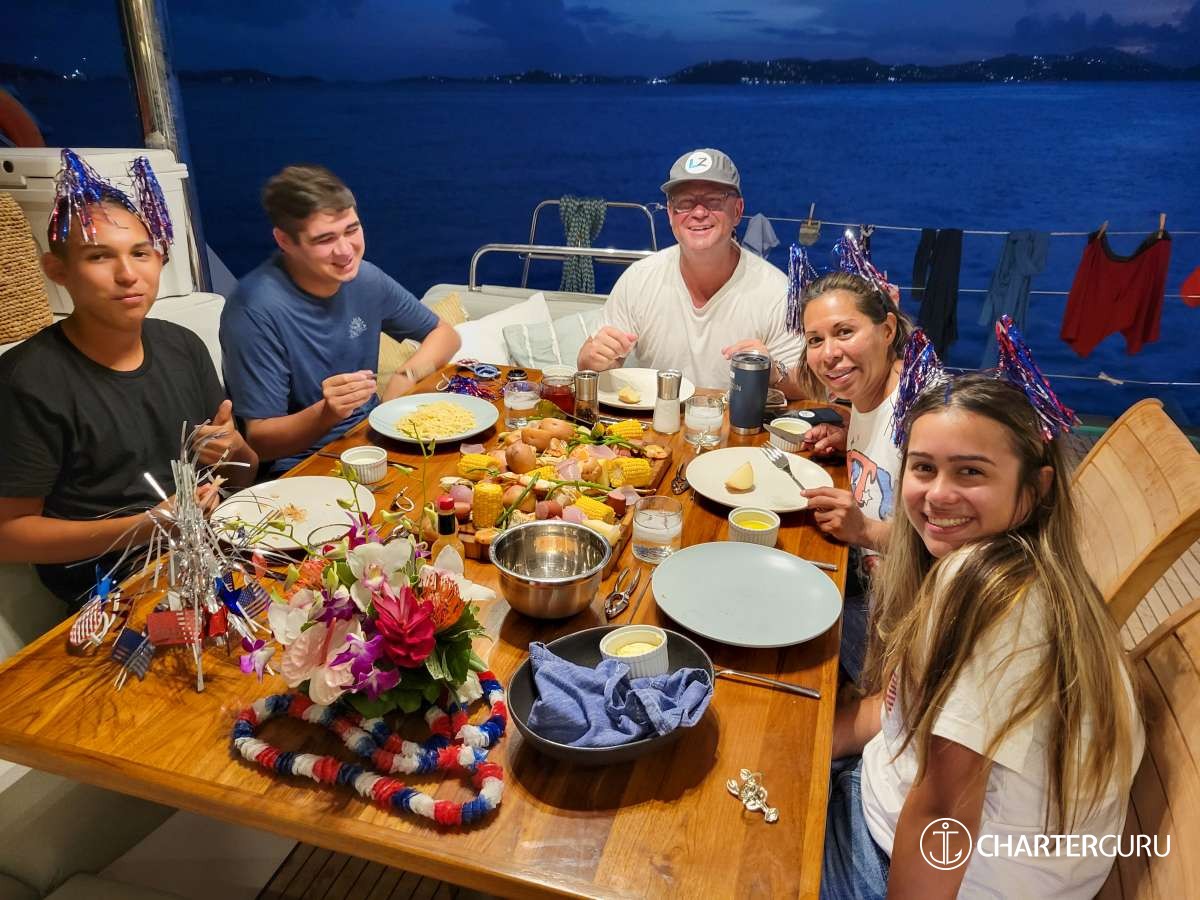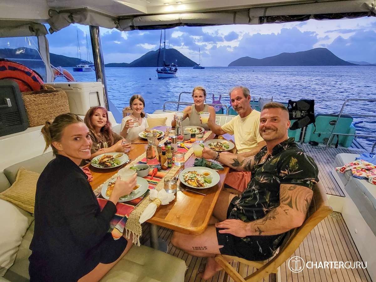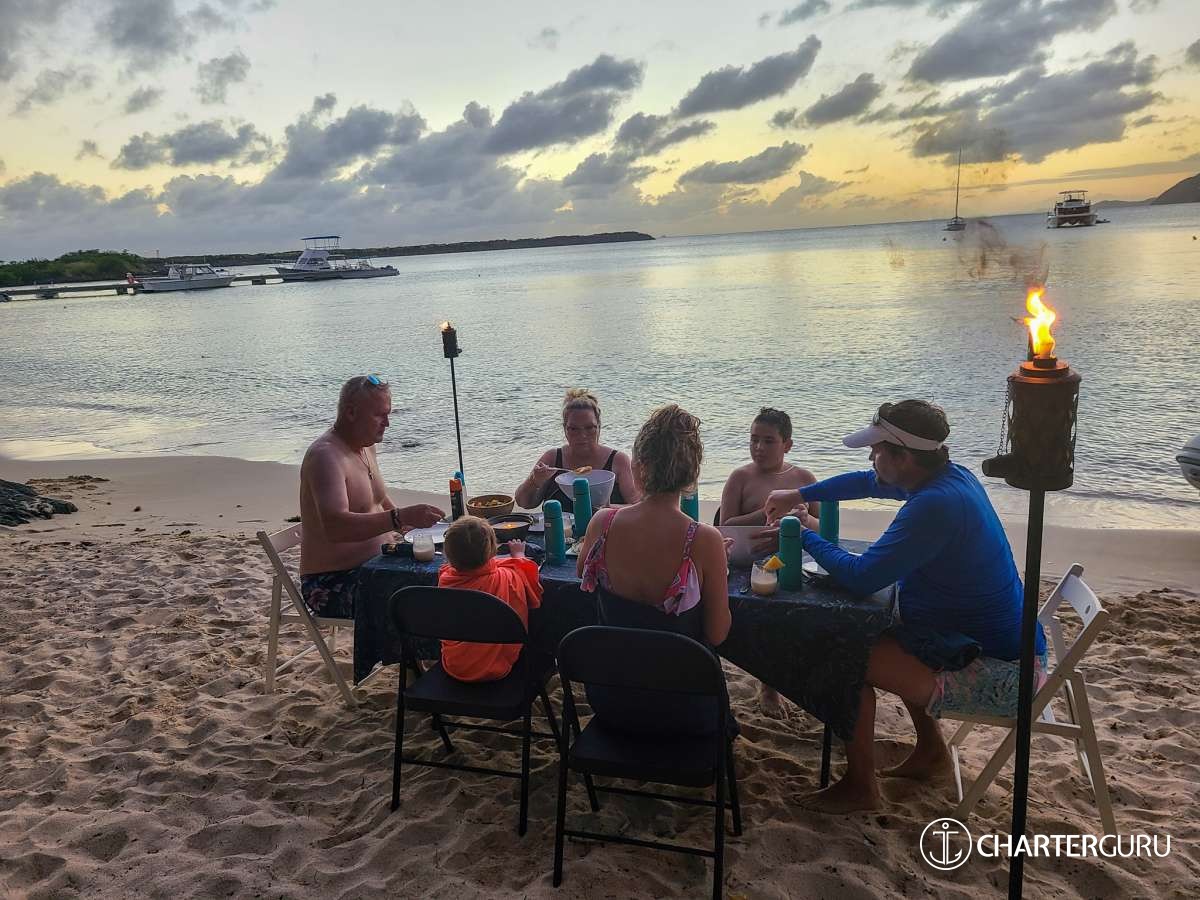 "We've traveled all over the world and this has to be our favorite vacation so far! Thank you for taking such good care of us! Michael was a great Captain from working the sails to navigating the dinghy in the dark. Casey - the meals, snacks, and drinks were way beyond our expectations - every meal was the "BEST MEAL" (seriously create a cookbook and make some side $$!!). Our trip has ended much too soon - let us know where you are in a year so we can book another charter with you! If you're ever in Atlanta, you have a place to stay so give us a call (same with Nashville! Come see us & we will take you to Broadway :)). God Bless you in all your adventures!"