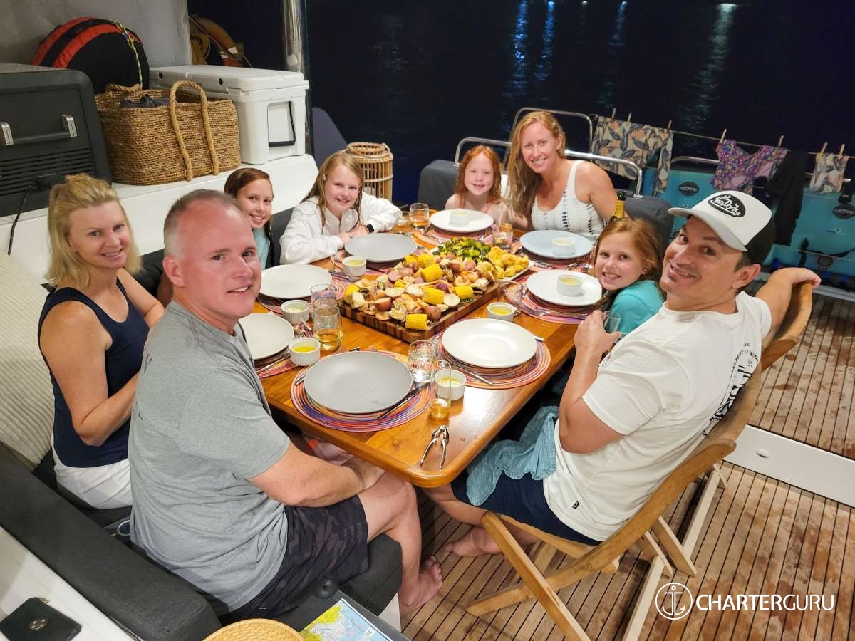 It’s hard to let down from day to day stress at the beginning of a vacation, but aboard the Liquid Zen we felt we were unwinding right away. Michael is an extremely competent captain. We knew at all times that he could handle waves, weather and maneuvering around other boats. Casey is an extraordinary chef. Every meal was healthy and delicious as well as unique. The presentation was gorgeous and creative. The table was always imaginatively set with the theme of the meal. We had 2 children with us who can be hard to please but Casey nailed it with the food every time.