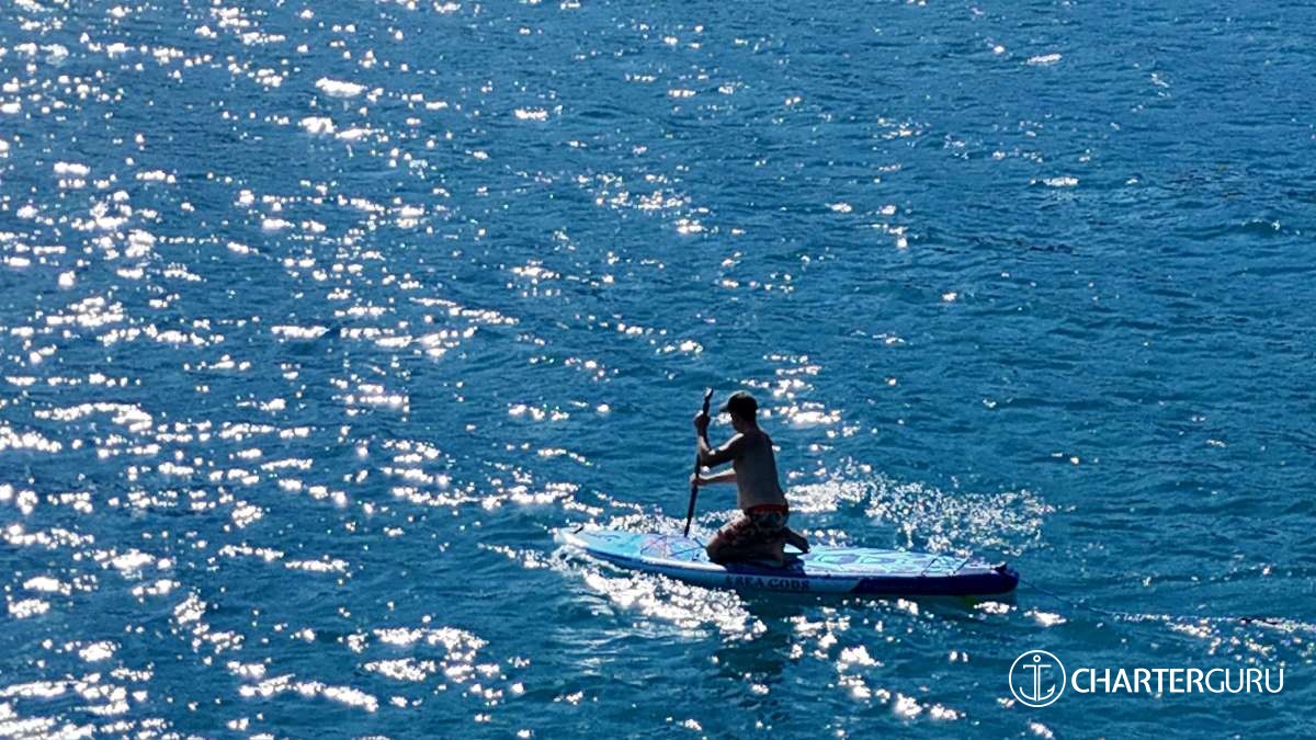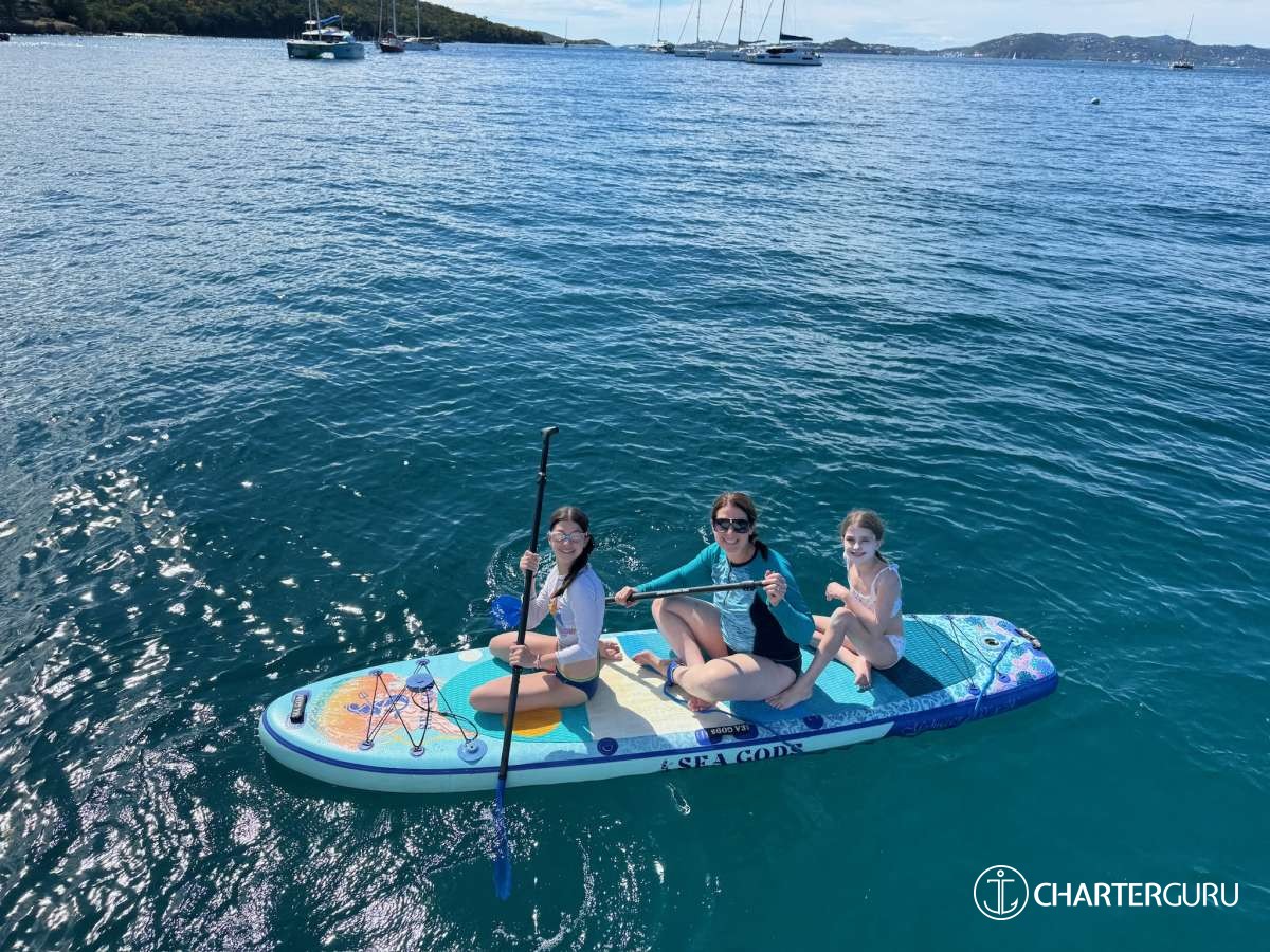 The Boat: We love the outdoor space. Several places to hang out in both shade and sun. And the water toys were so fun. We really enjoyed relaxing on the float, playing with the SubLue, paddle boarding, and hotdogging behind the Dinghy. The cabins are comfortable, especially the mattresses. Courtney (and Jim) thought of every amenity for our stay.