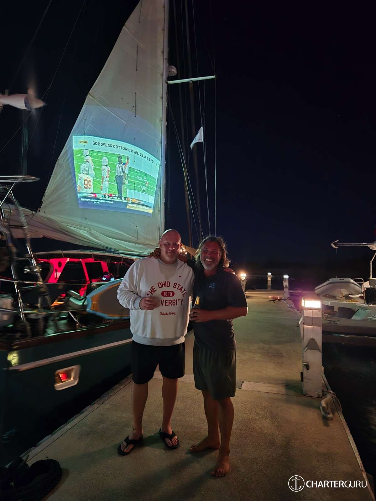 Happy hour on the fly bridge with a hardtop cover was amazing. Breeze, view and shade coupled with fantastic libations- the recipe for perfection. Lots of fun toys to hang out on when we weren't snorkeling. Captain and Chef were great. They were very accommodating and worked hard to make our trip special. We would definitely book this boat again.