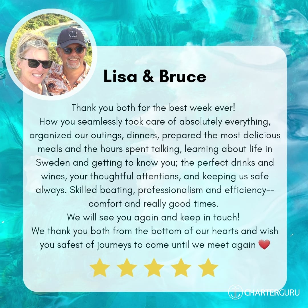 We could not have been more fortunate and blessed to experience this BVI journey and magical week with you both! You are both soo genuine, welcoming, heartfelt, positive and we look forward to lifetime friendship with you both! Thank you for making this week unforgettable.