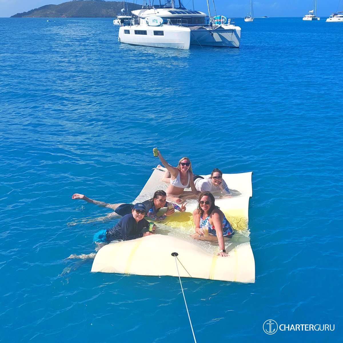 MISS SUMMER is classified primarily as a sailing catamaran. The the heart of the yacht is the main saloon, which connects to the aft deck. The aft deck is expansive, with a comfortable dining and seating area and that's where most of the meals are served. The fascinating cabins offer designer mattrace beds and feature ensuite bathrooms. The cabins are located below the main saloon, connected by stairs (inquire about handicapped access). Multiple portholes offer desirable views, while providing privacy if needed.
