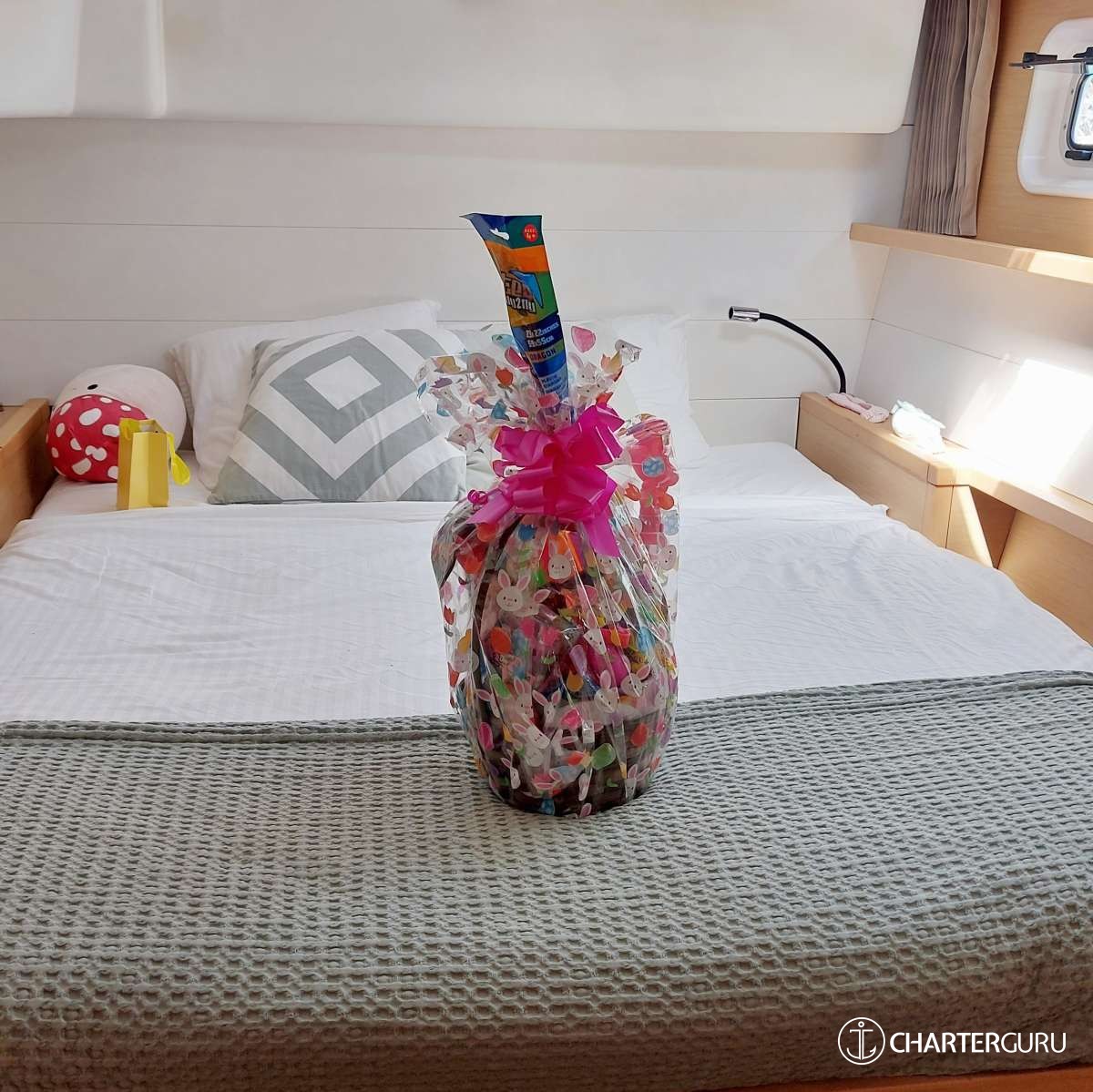 Miss Summer is a lovely Lagoon 450 flybridge, 4 cabin version. Well known to be spacious for its size, with multiple areas to enjoy, like the front cockpit sofa, the trampolines, the sun beds or sofa on the flybridge and not to forgot the aft cockpit that offer good shade sitting area for outdoor dining.