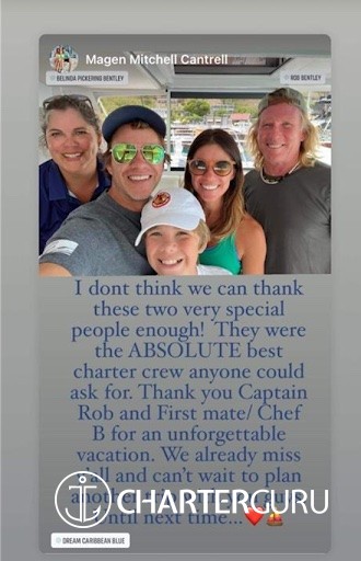 Rob was a fantastic captain. Not only did he work tirelessly to keep the yacht in perfect shape but he was also a great guide during the trip. He catered our itinerary around the needs of our entire group. Whether that was extreme amounts of snorkeling for some or extreme relaxation and bar hopping for others. We all got what we wanted out of our week long vacation of a lifetime!