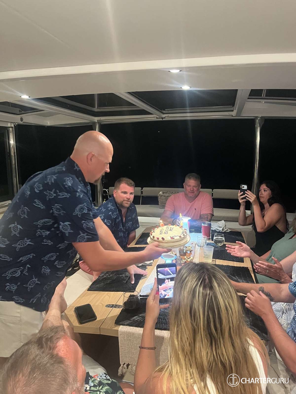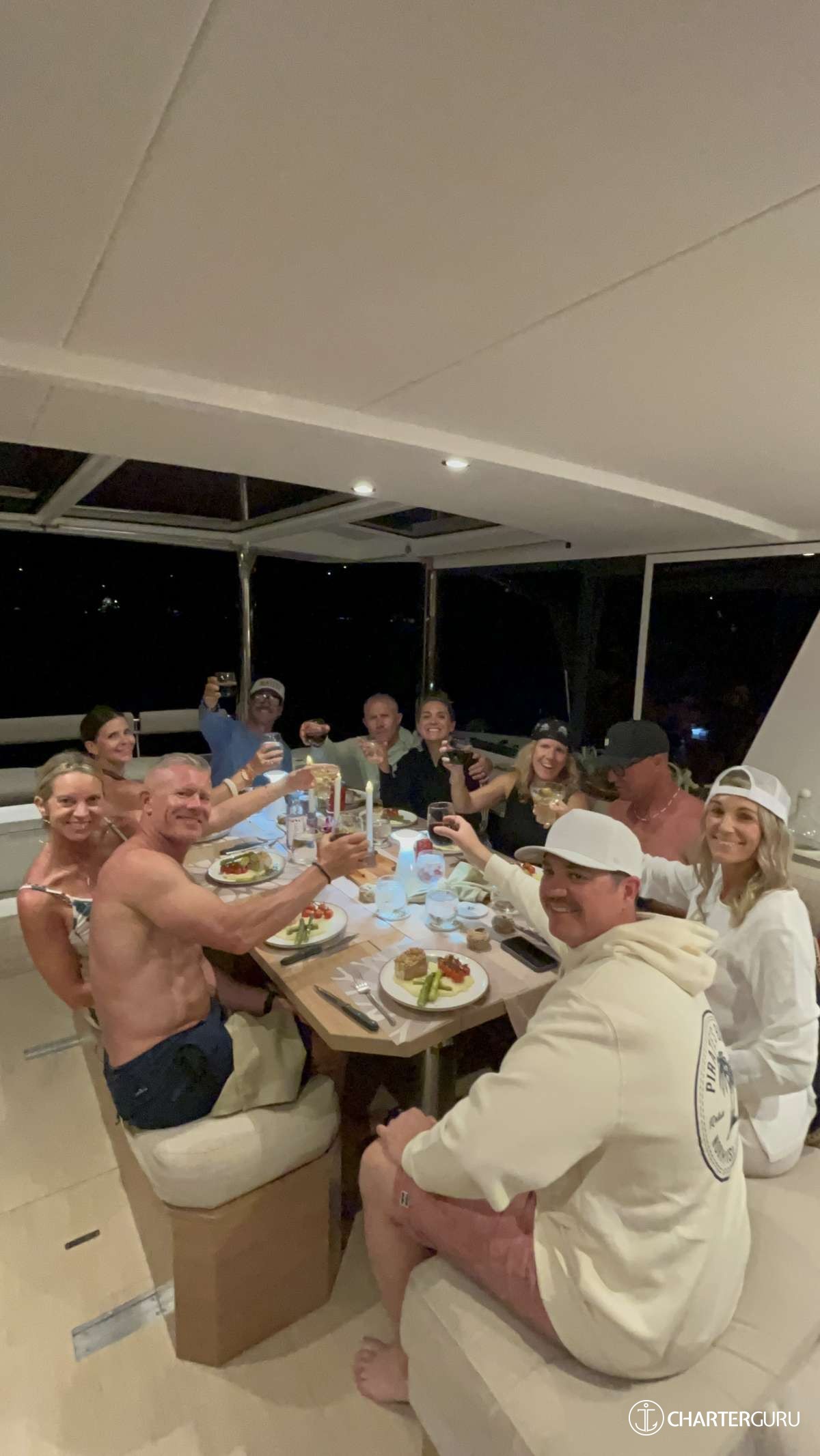 Wow! It’s hard to find words that will truly capture & describe the experience we had with you both on No Inheritance this past week. The boat is beautiful and amazing and that is what dazzled us when we stepped on it the first day. But as the week unfolded, it became very apparent that you both are the real gem on the boat.Owen – you’re on it – everything from our safety, to knowledge of the islands & waters, serving drinks, sailing expertise, and your calm, friendly demeanor is so welcoming.Mia – the sounds of mixing & cutting in the kitchen are the most pleasant alarm and your magic starts as delicious smells call us out of our rooms. I can honestly say your meals have been extraordinary. Your eyes & smile radiate love & life!You two are what made our vacation so memorable and it was a gift to watch how you work together, each bringing your knowledge & talents together to create this perfect vacation for us!