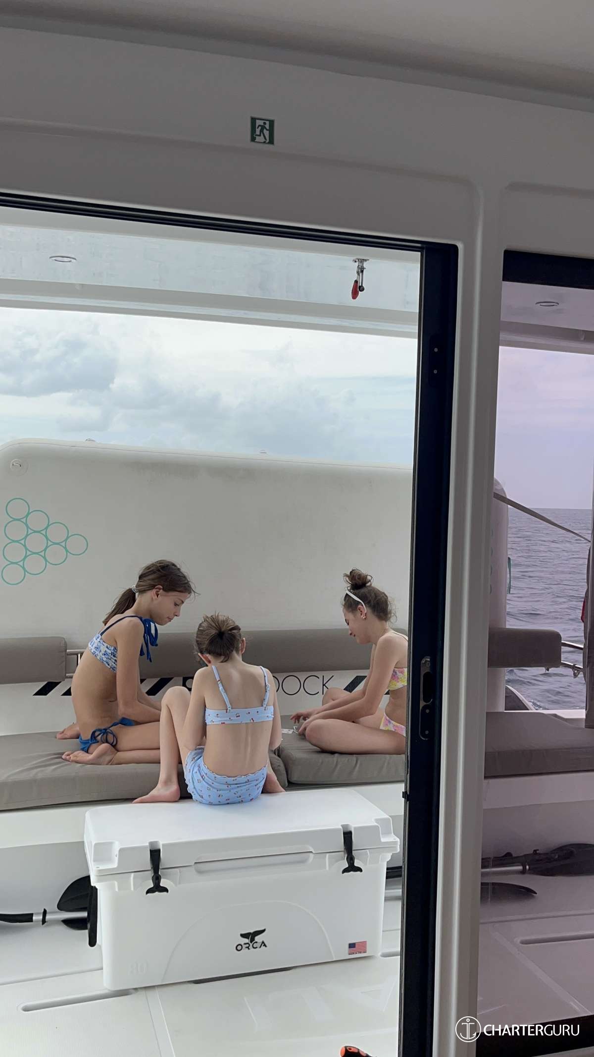NO INHERITANCE is a Bali sailing catamaran that showcases Bali’s signature open-plan design and bright, breezy living from bow to stern. Step into the cockpit with dining for 8 and a comfy lounge bench—made for long meals and lazy afternoons at anchor. The flybridge is a favorite for sweeping turquoise-water views, sail-watching from every angle, and sunset cocktails with a book in hand. Inside, the salon is flooded with natural light thanks to wraparound windows and easy indoor-outdoor flow. Sleeps up to 10 in 5 Queen cabins, each with a private ensuite and in-cabin sound controls. With multiple lounge zones and a polished finish throughout, NO INHERITANCE is built to keep everyone happy—together or tucked away. Big views. Easy vibes. Zero regrets.