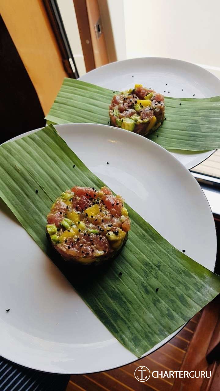 The food was great, so much so that we only wanted to eat on the boat! The service was outstanding, we never wanted anything. Thanks for putting up with our numerous requests! And for staying up late with us and doing Karaoke!!