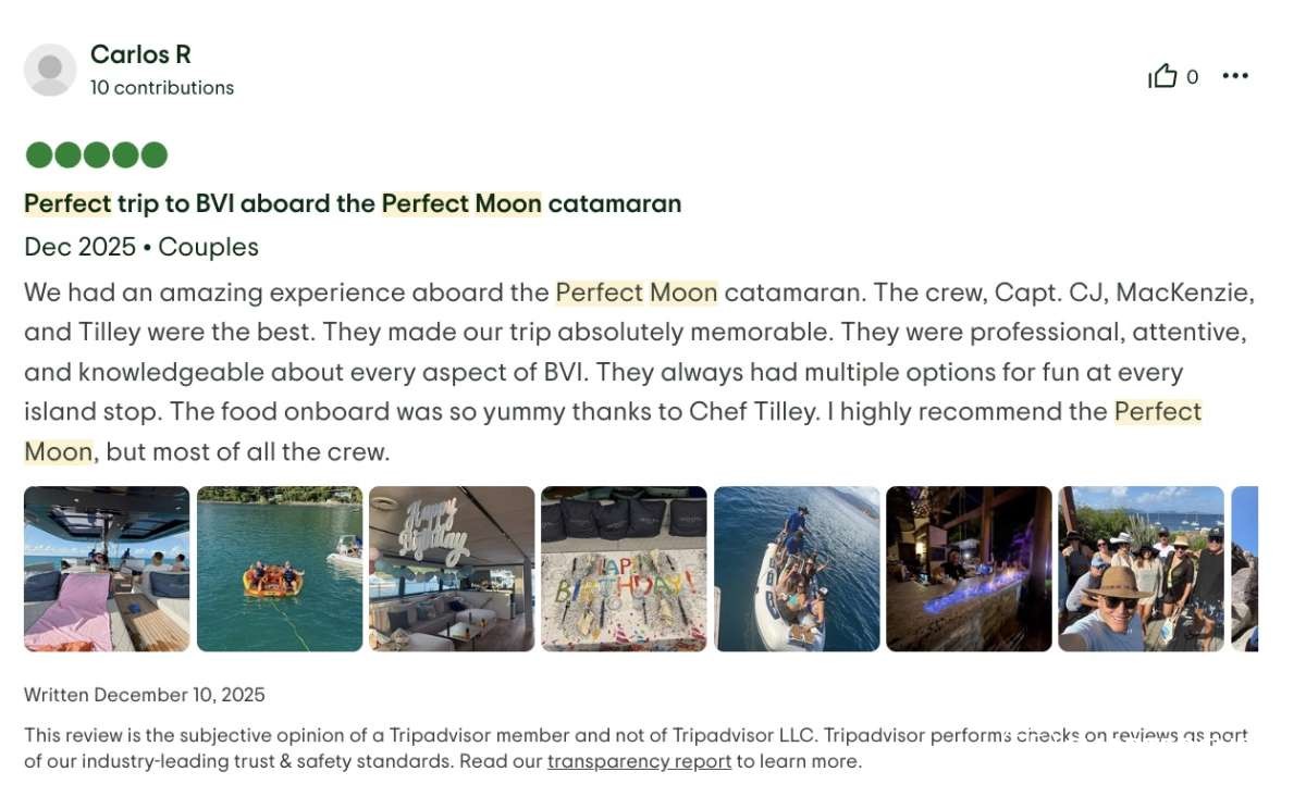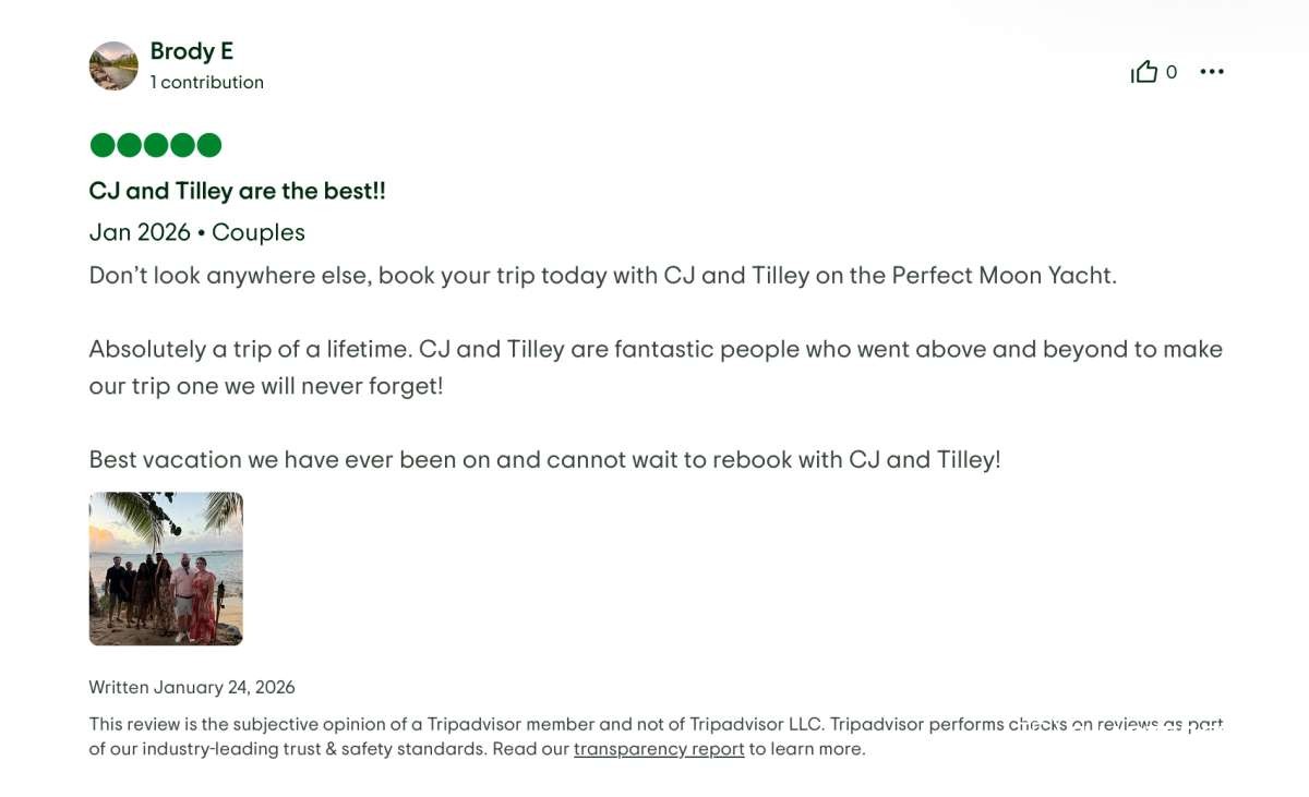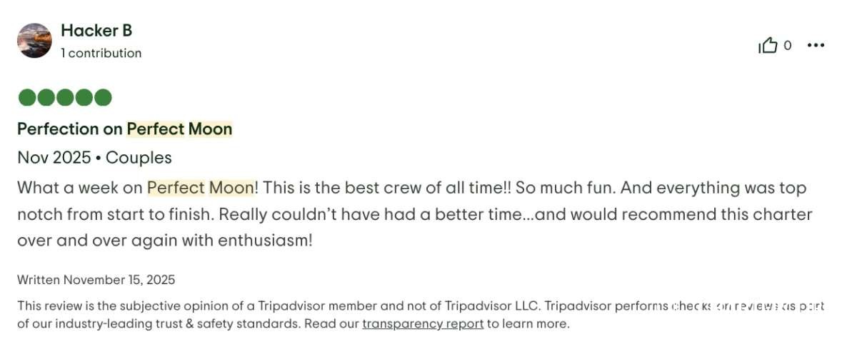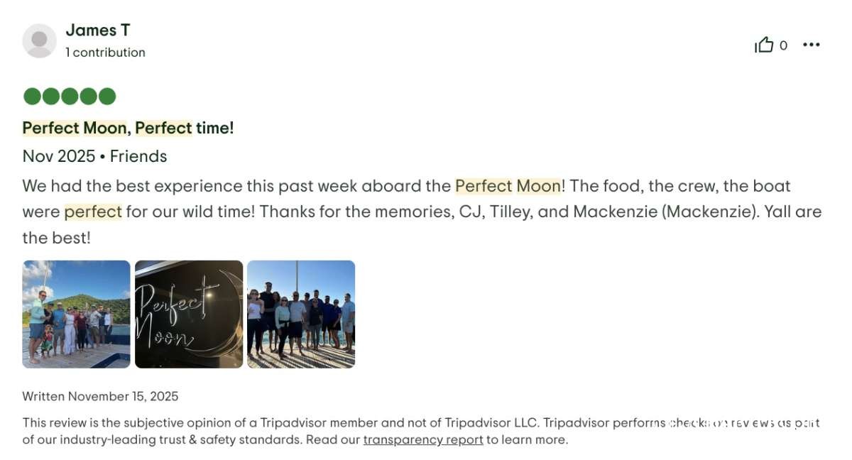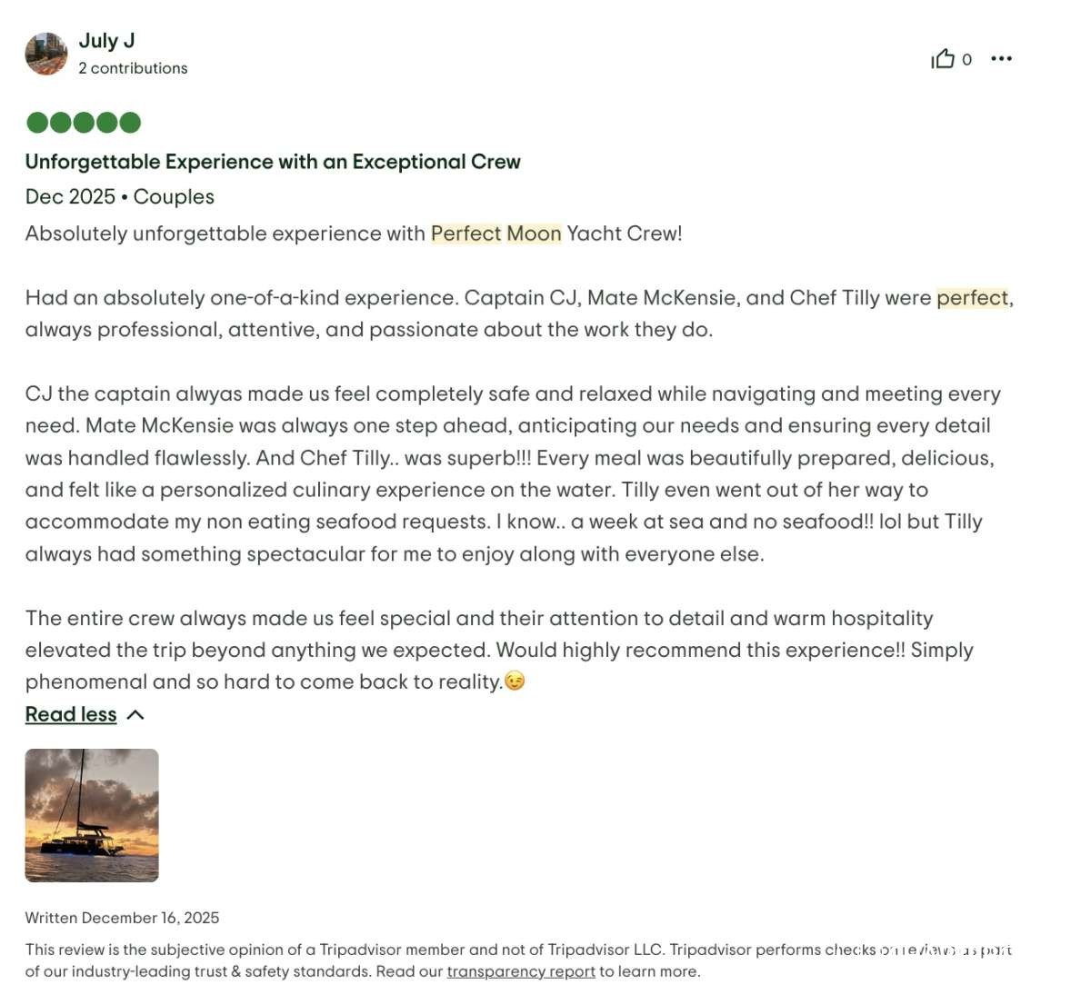 This crew delivered the ultimate #dreamweek — fun, relaxing, delicious, safe, and beyond memorable. We cannot recommend #PerfectMoon and this crew highly enough. We will be talking about this trip forever! 🌙⛵✨