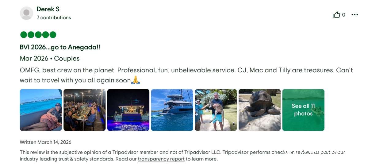Captain CJ is incredibly skilled, calm, and knowledgeable. Our sail to #Anegada was smooth and effortless. We always felt safe and completely taken care of under his leadership. He’s a #phenomenalcaptain.