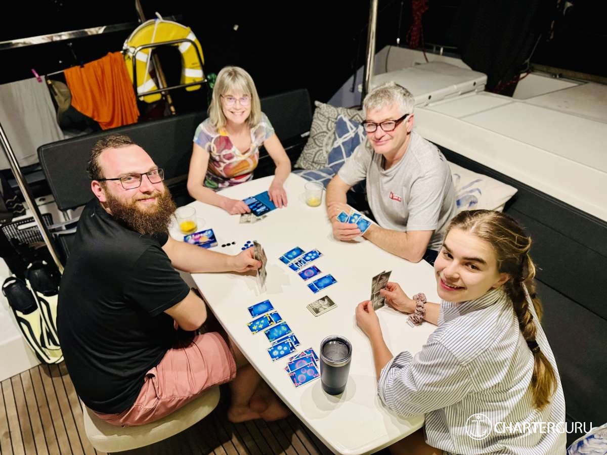 I don’t know which of you is more lucky to have the other. The highlight of our week has been you guys and your fabulous sense of humor. You have an uncanny ability to give us exactly what we want, both giving us space and being there, for laughs, for cocktails, for snacks, and constantly offering entertainment options. Steph, everyone raves about your food, and it is heavenly good. If you forced me to pick favorites, it would be the evening fish dishes, and the massive breakfasts that were perfect after an hour of wobbly dawn yoga on deck, an early morning snorkel, and plenty of coffee. BTW that coffee was always there and freshly brewed no matter what ridiculously early time I got up. I couldn’t beat Ryan out of bed, even once, although Liz managed it, but only on day one, getting up at 3:30am she was so determined not to miss a minute of vacation.