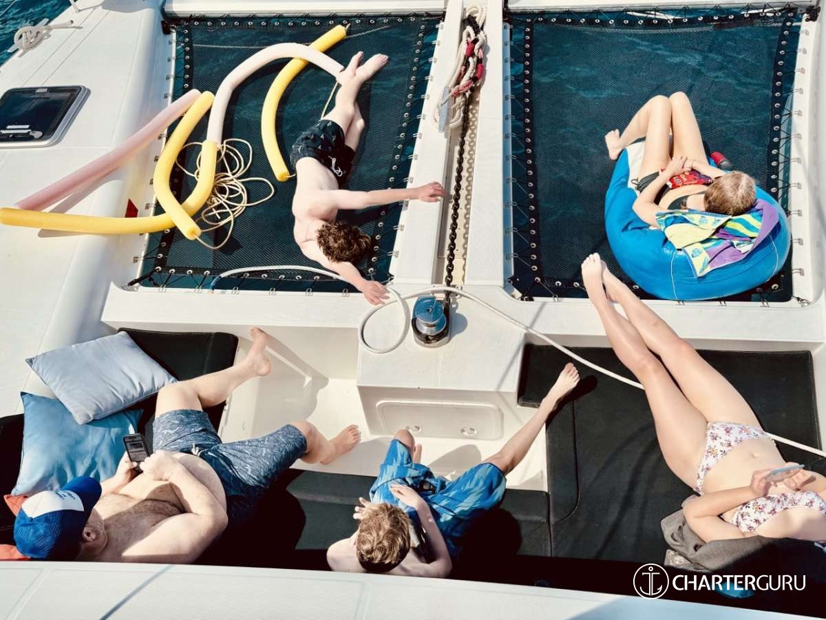 RAPSCALLION is presented primarily as a sailing catamaran. The the core layout is spread out from the main saloon, which connects to the aft deck. The aft deck features a variety of seating areas and that's where most of the meals are served. The fascinating cabins offer unbeatable views in the morning and are located just below deck. The cabins offer unbeatable views in the morning and are located just below deck. Multiple portholes connect you with the outside world.