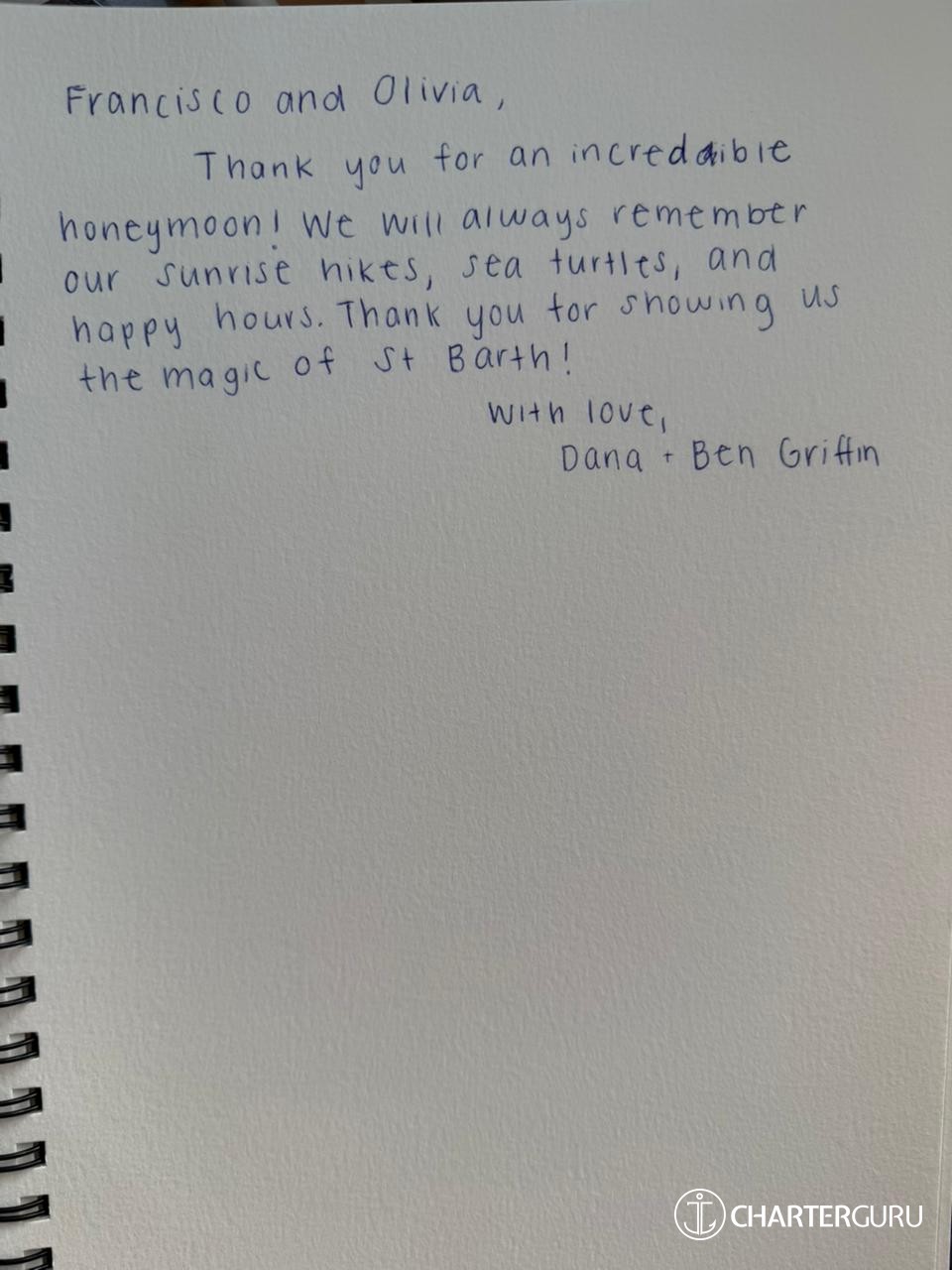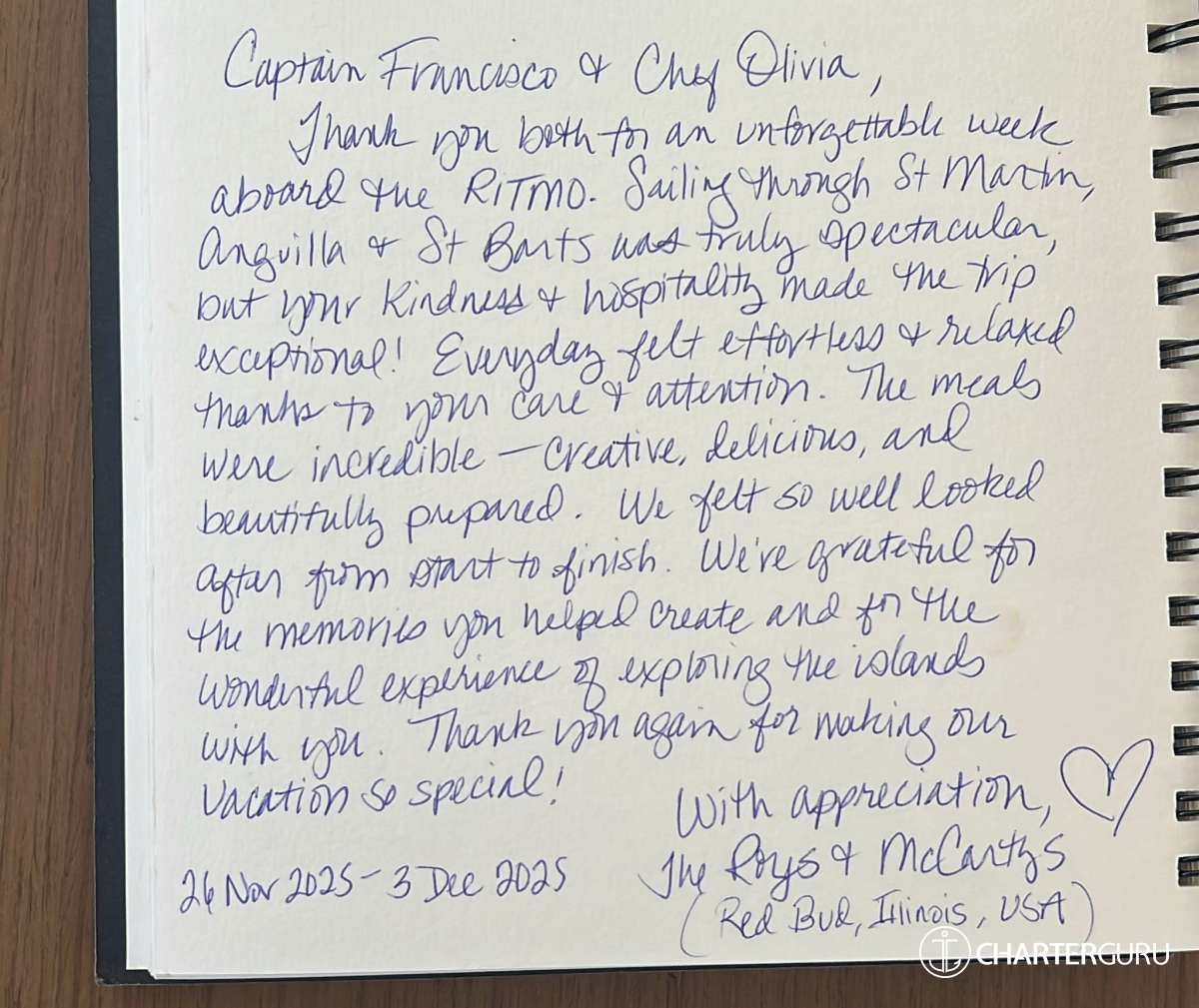It is with our most sincere gratitude that we thank you for a magical family journey through the beautiful BVI. You both led with grace, kindness, and wisdom. Your knowledge of the islands and sailing expertise is impressive & kept us all safe—thank you!