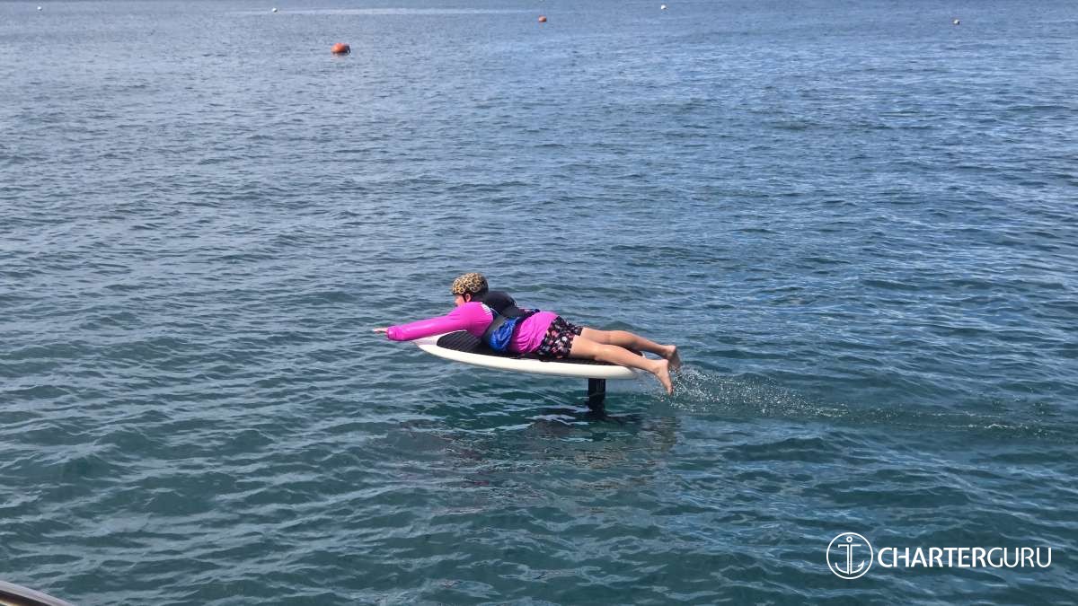 Guests can explore the ocean with our new ScubaPro snorkeling gear, Subnados (under water scooters), Lift 5 E-Foil, kayaks, paddleboards, tubing, water skis and fishing gear or unwind on our Bote 360 Floating dock drifting in clear blue waters.