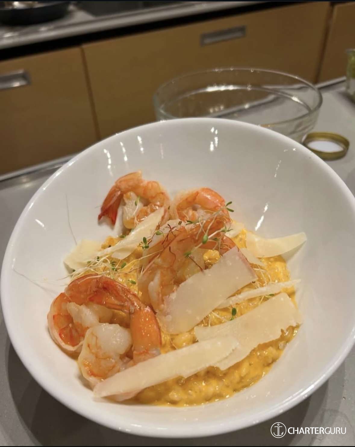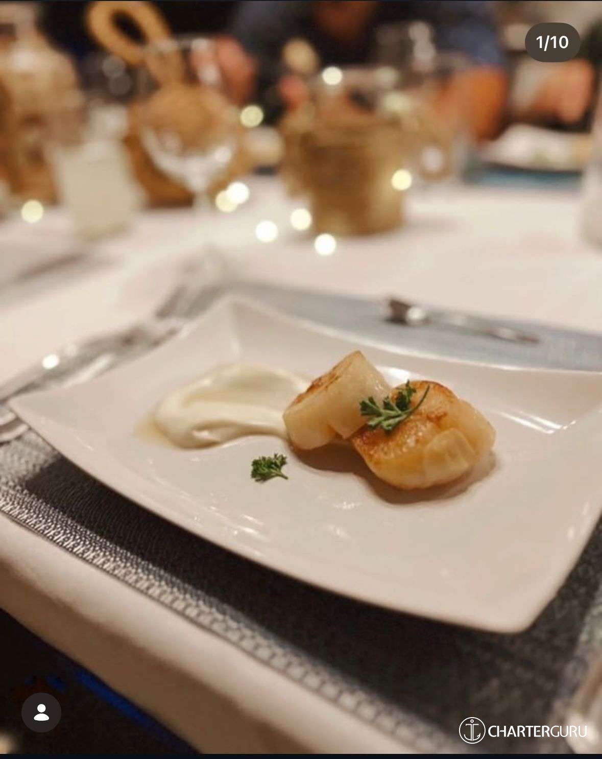 reflect the mood of the voyage—vibrant seafood lunches after a dive, refined wine-paired