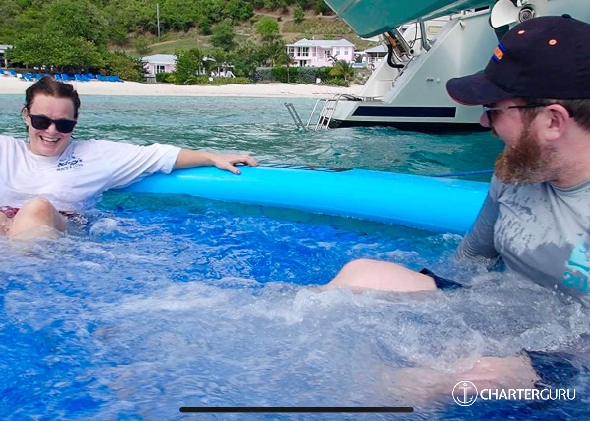 We were welcomed aboard by the happy, smiling faces of Captain Mike and Chef Lizzy – just their normal, everyday nature! It’s glorious! We were treated to the best scrambled eggs on the planet, and the best hamburgers – Lizzy rocks!! I don’t think there’s anything Mike and Lizzy don’t know! Great teachers! I learned so much from Mike about sailing. Lizzy showed off her knot tying skills teaching the kids! The Baths was amazing! BG