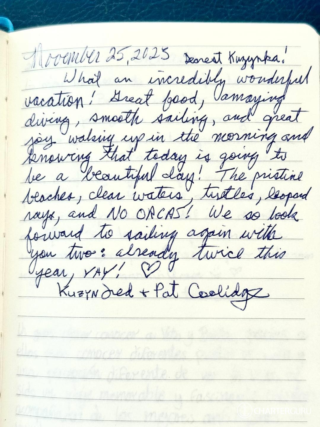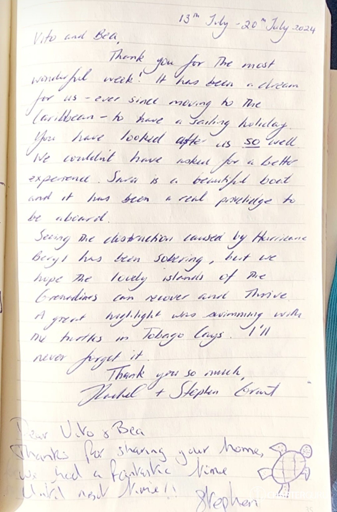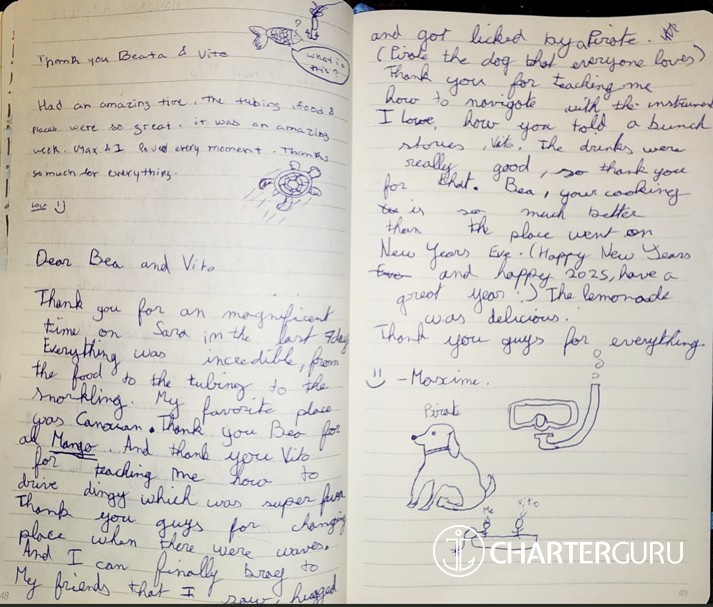 Our second time sailing with you and we will come back for sure. Sara, Beata's cooking, the captain, safe sailing... A special trip for snorkelling, hiking and you for all your hospitality... for making us feel like at home.