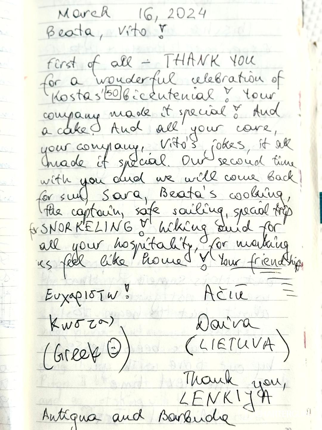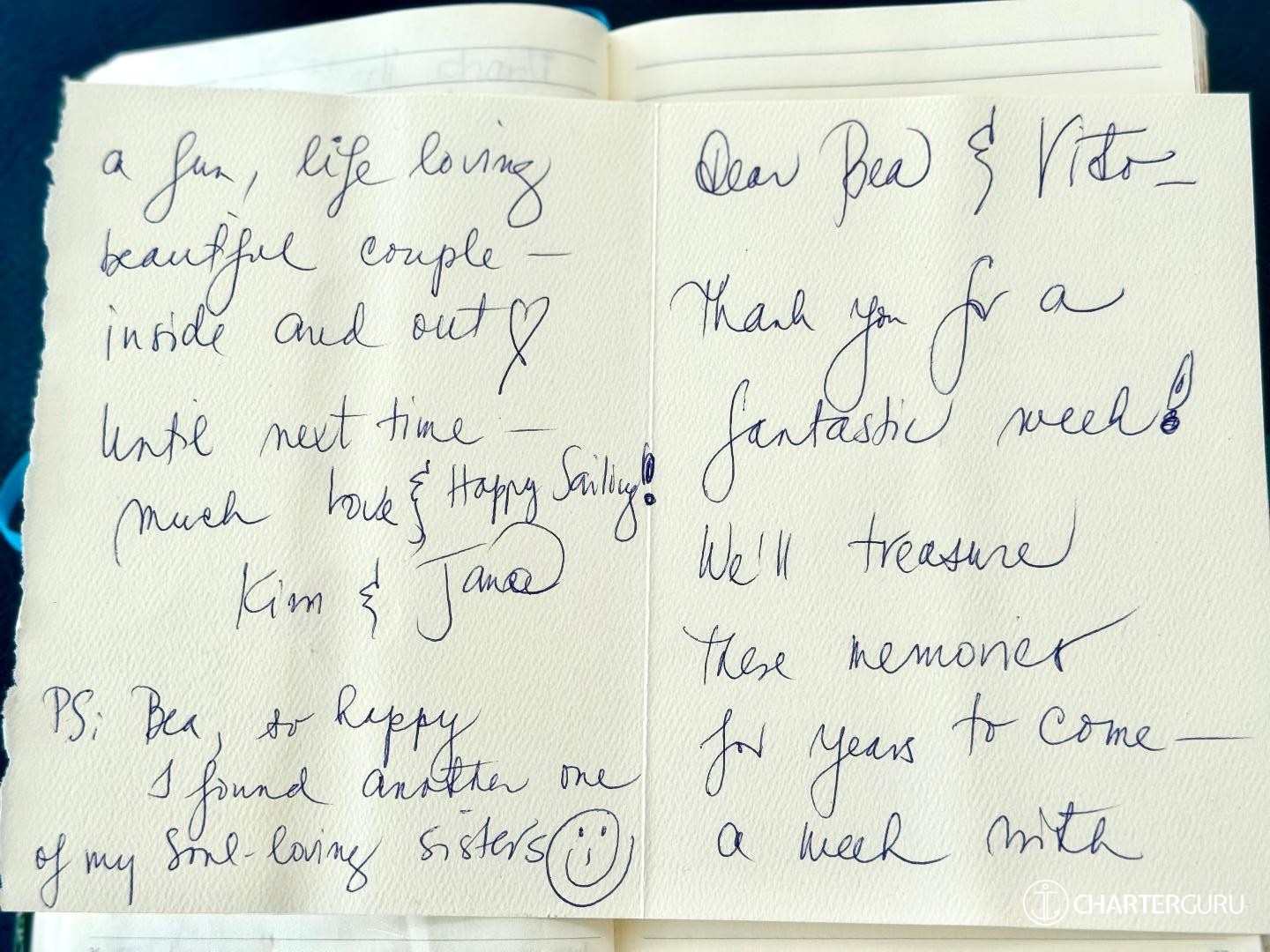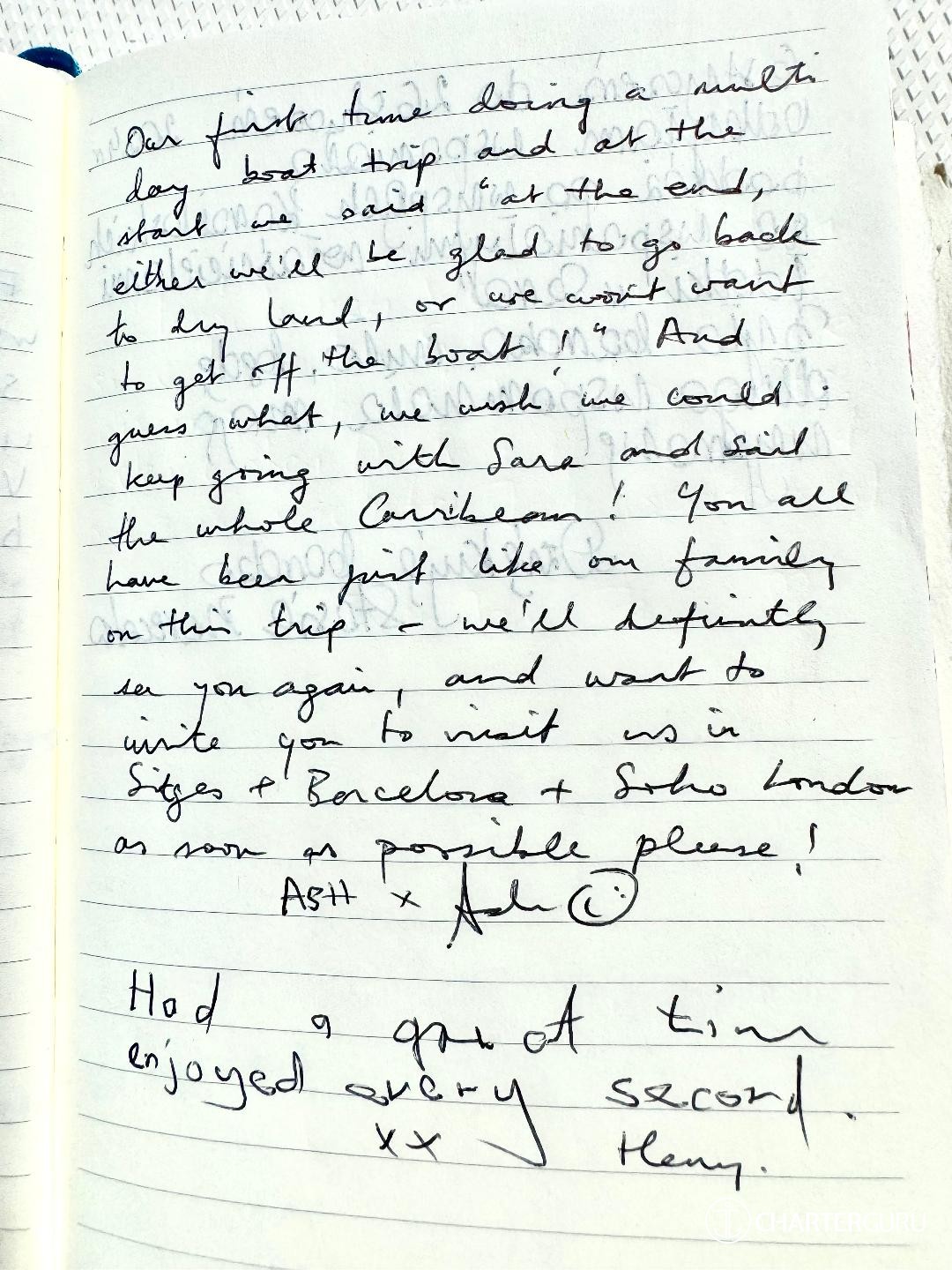 Our second time sailing with you and we will come back for sure. Sara, Beata's cooking, the captain, safe sailing... A special trip for snorkelling, hiking and you for all your hospitality... for making us feel like at home.