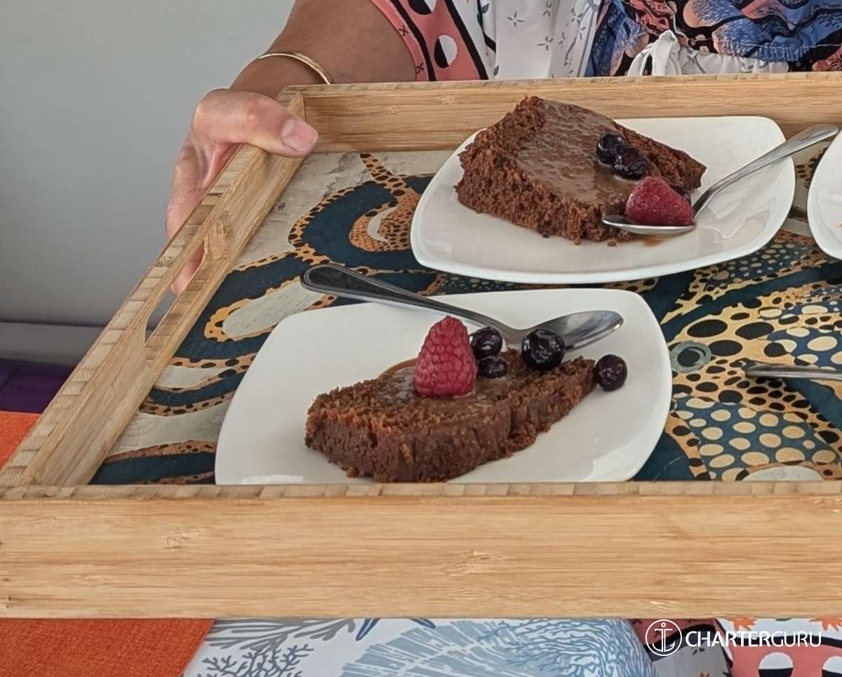 Chef Kendra prepared outstanding meals, always beautifully presented, from banana chocolate chip pancakes to tuna nachos and freshly baked bread. Her creativity and attention to detail made every meal a delight.