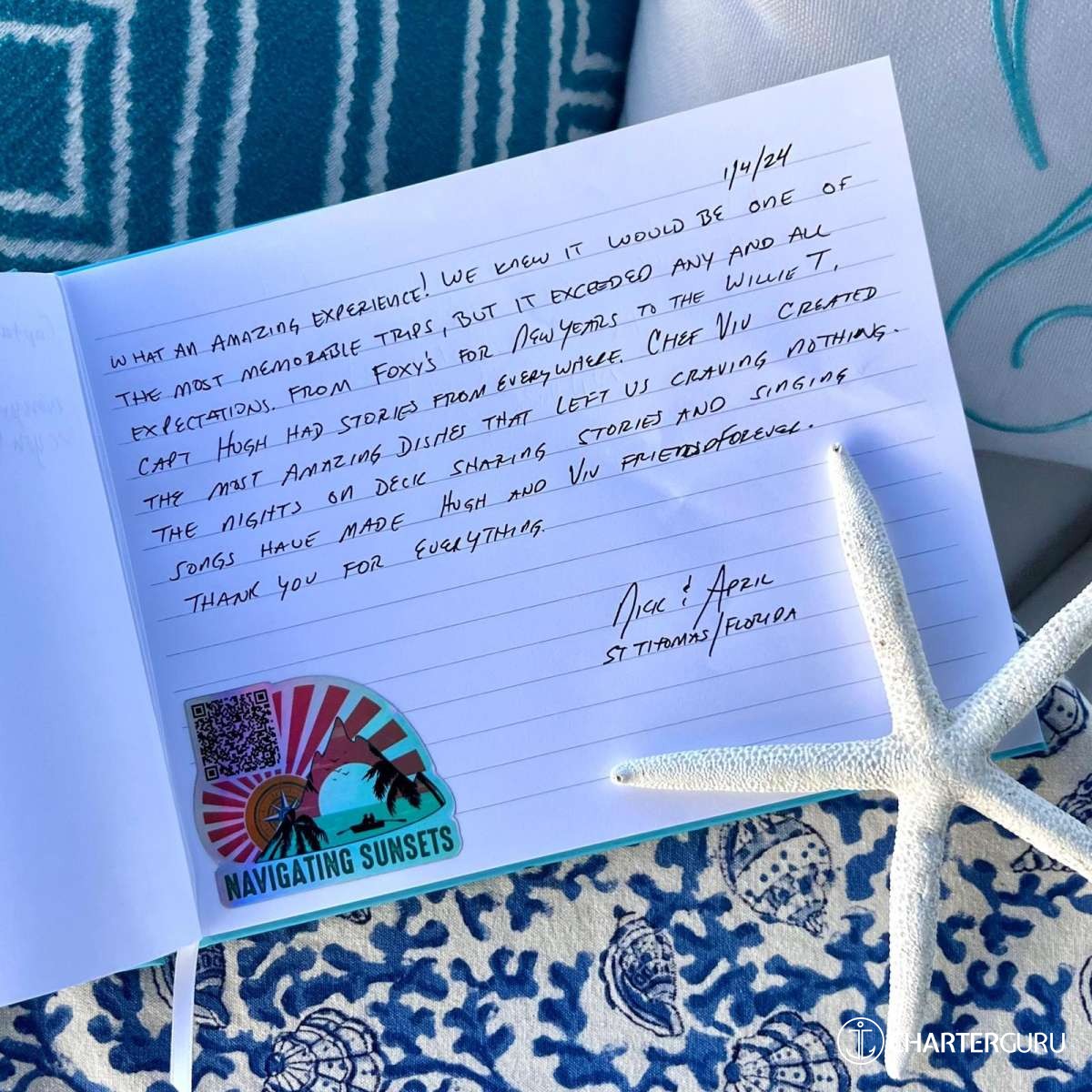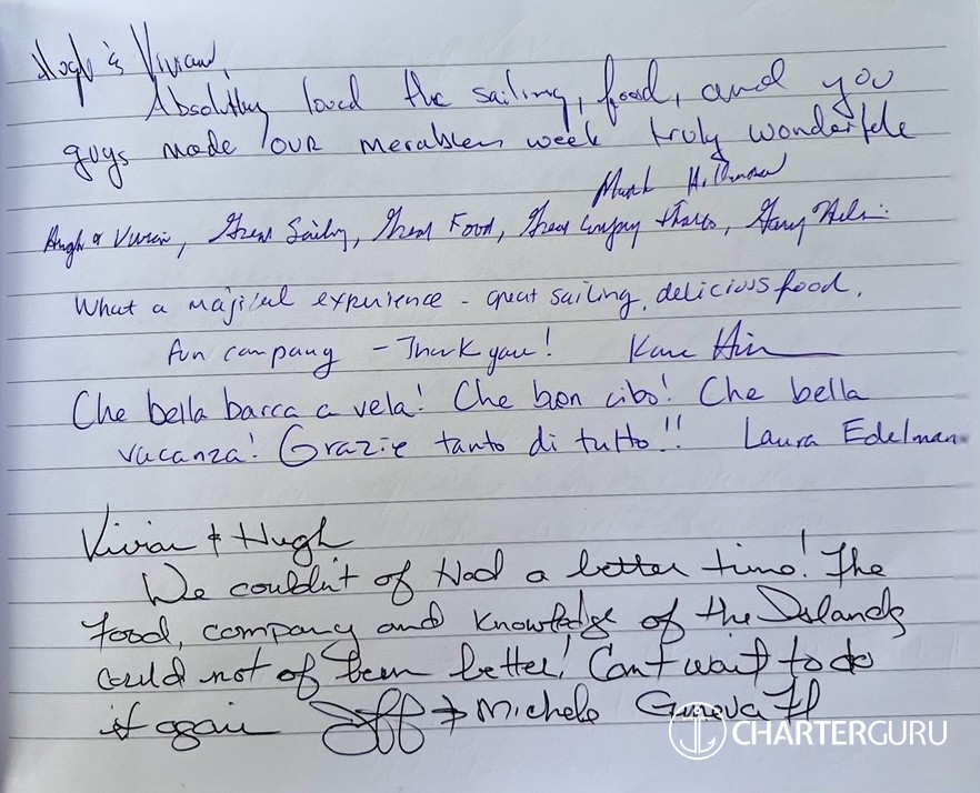 Thanks for an amazing trip, especially the two full days of sailing & the menu created by Vivi!
