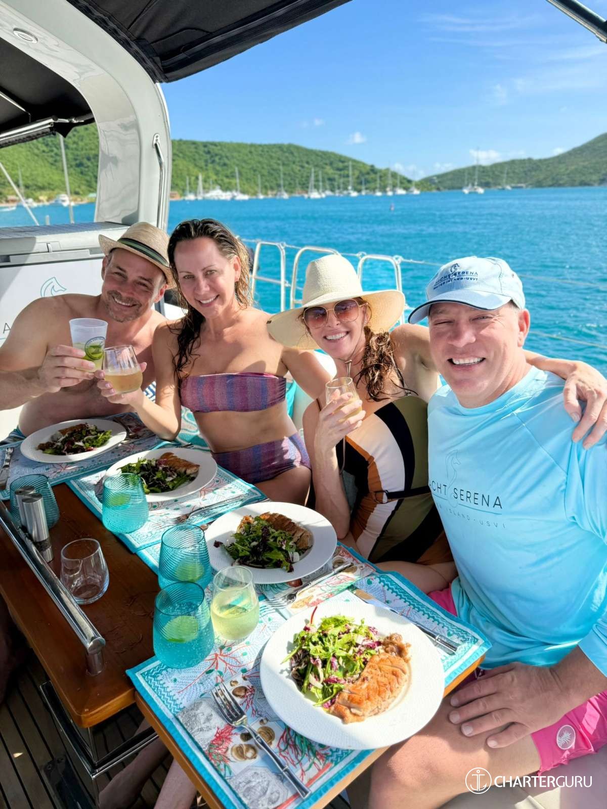 Yacht Serena and the both of you werejust what the Dr. ordered! Even though things got a little crazy back home, you helped us unplug and relax. The accommodations were perfect. Your meals and cocktails were fantastic - even going out of the way to find special treats! Hugh has the best stories. We can't wait to come back and hear some more! Thank you for taking us to the most charming spots in the US & British Virgin Islands.