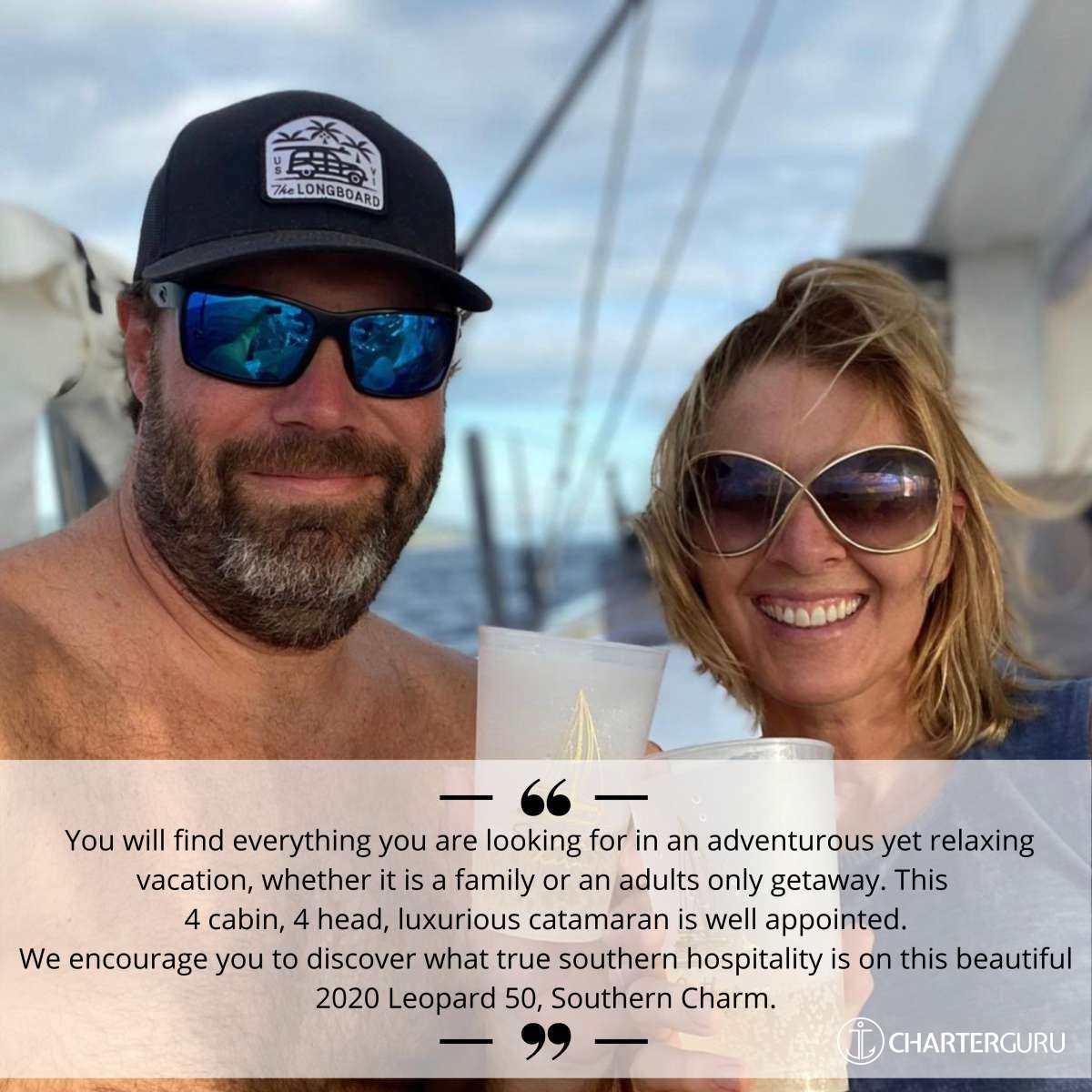 Presented by DMA Yachting, the impressive charter yacht SOUTHERN CHARM is a 50 ft sailing catamaran. The most appealing features of SOUTHERN CHARM are her generous space and interconnection with the sea. SOUTHERN CHARM spends the summer and winter season in US Virgin Islands. She was constructed by the famous yacht builder Leopard in 2020. The expansive yacht layout features 3 generous cabins and easily accommodates up to 6 guests.