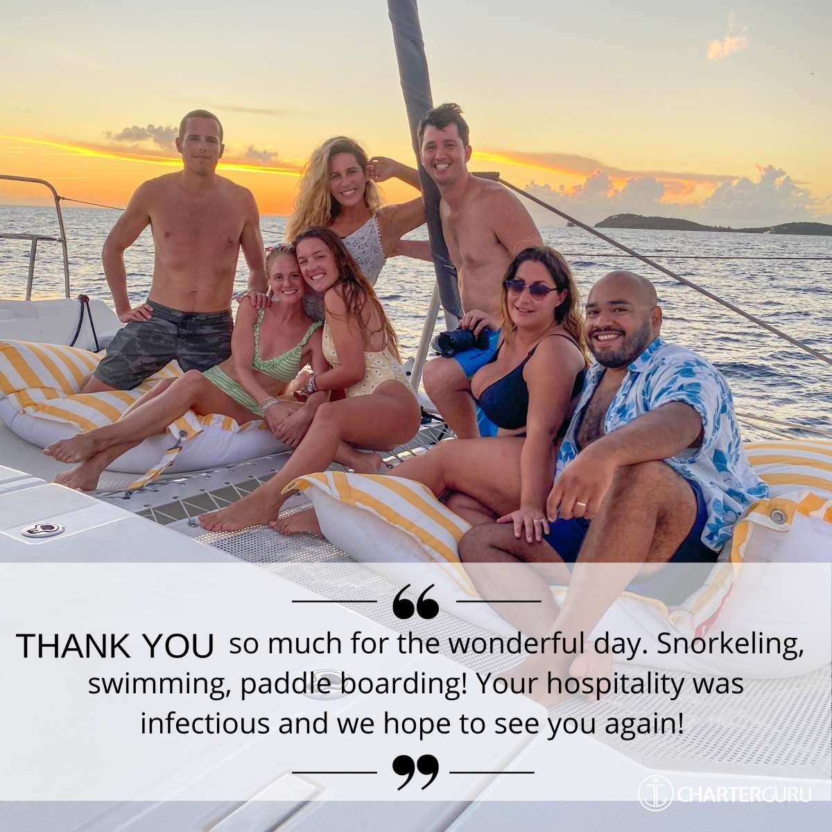 The charter was equal parts invigoration with snorkeling and paddle boarding along with rest and relaxation. The gourmet cuisine for each meal was such a treat.