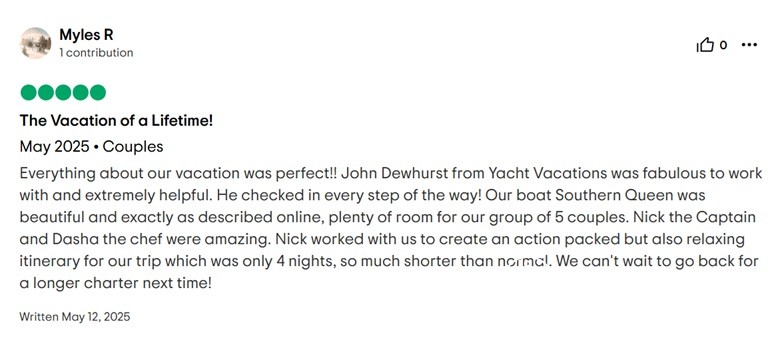 Inclusive charters are crewed charters with minimum or no additional charges. Provisioning, fuel and crew are included in the price. Additional fees may include diving, premium alcohol, local taxes, or onshore activities. These vary from yacht to yacht, please inquire.Southern Queen Yacht Charter Price