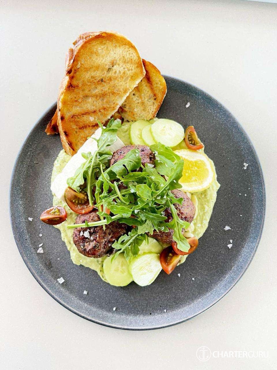 Tryst is offered primarily as a sailing catamaran. The yacht layout radiates from the main saloon, which connects to the aft deck. The aft deck is generous, with a prominent dining and seating area and usually it is where you, as a charter guest, spend most of your time. The tastefully decorated cabins offer designer mattrace beds and feature ensuite bathrooms. The cabins offer unbeatable views in the morning and are located just below deck. Multiple portholes provide a connection with the natural world outside.