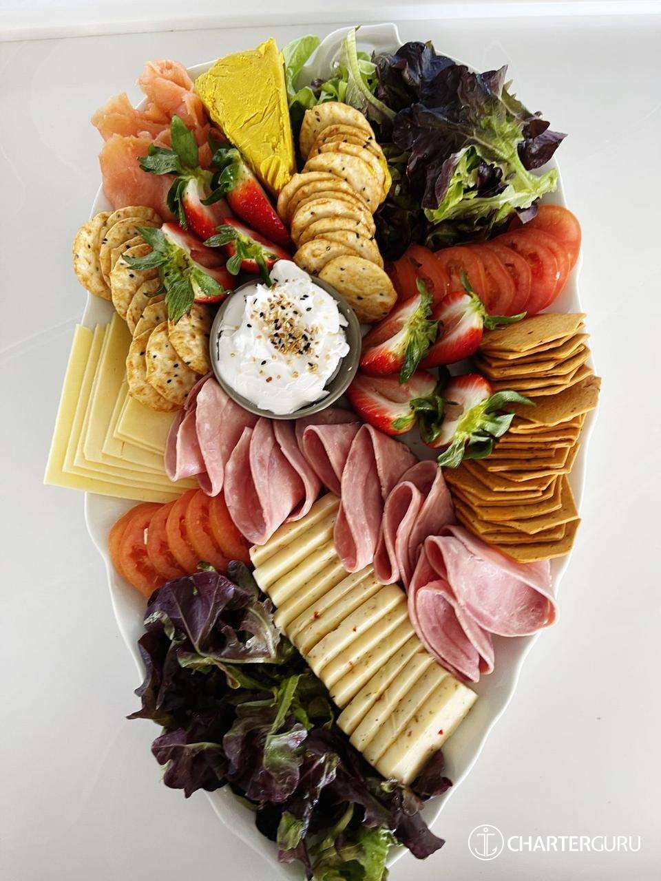 Includes; 7 breakfasts, 5 lunches & 6 dinners, all other meals to be eaten ashore at client's expense.