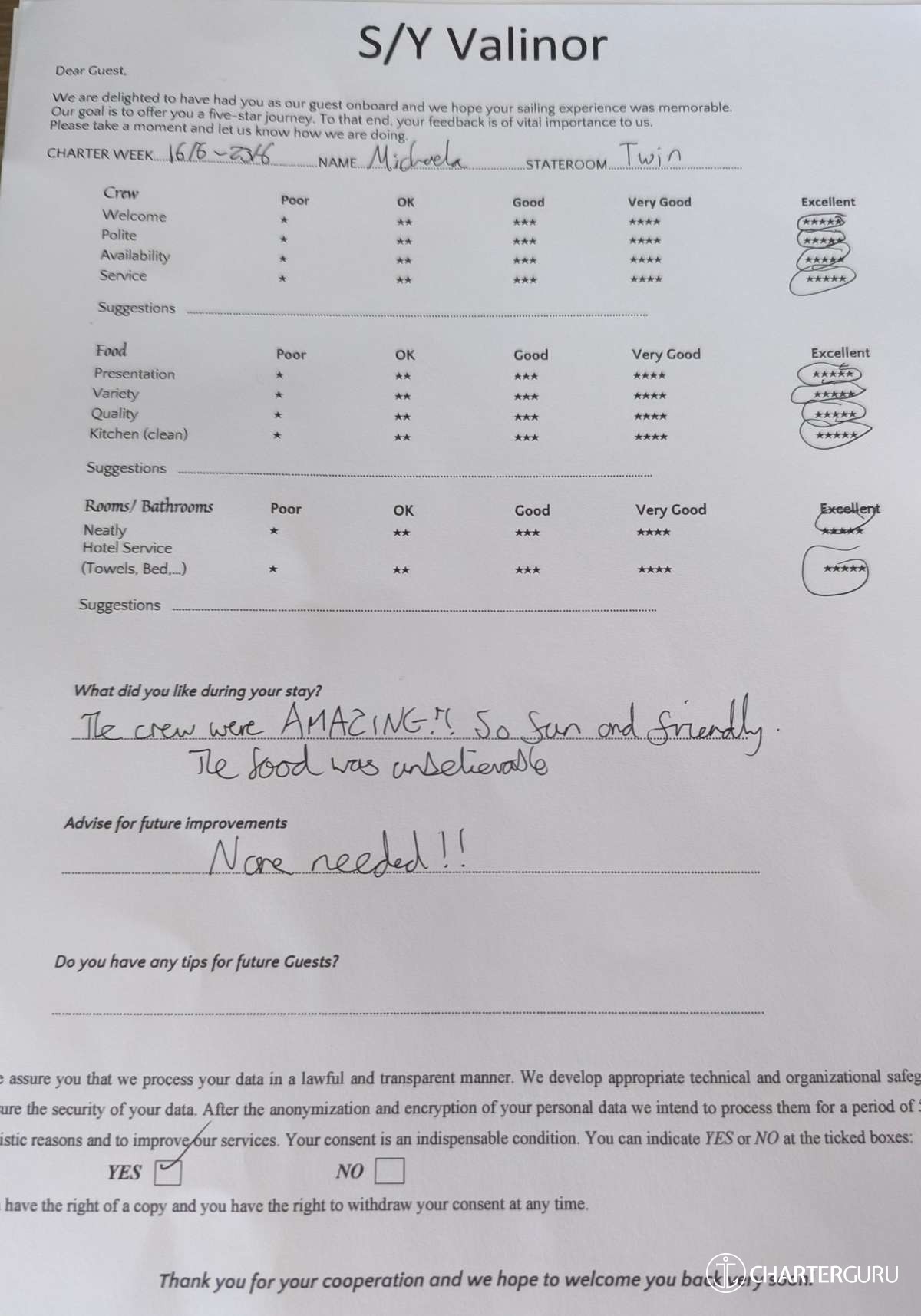 Inclusive charters are crewed charters with minimum or no additional charges. Provisioning, fuel and crew are included in the price. Additional fees may include diving, premium alcohol, local taxes, or onshore activities. These vary from yacht to yacht, please inquire.VALINOR (Mediterranean) Yacht Charter Price