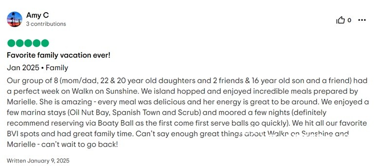 Julie’s culinary style is elegant yet approachable — effortlessly blending vibrant flavors, colorful presentation, and guest preferences into beautifully balanced meals. From island-inspired lunches and bright, wholesome breakfast bowls to romantic dinners under the stars, her menus are tailored to suit the rhythm of each day on board. Guests often rave about her creative flair, light touch, and ability to make each meal feel like a moment worth savoring.