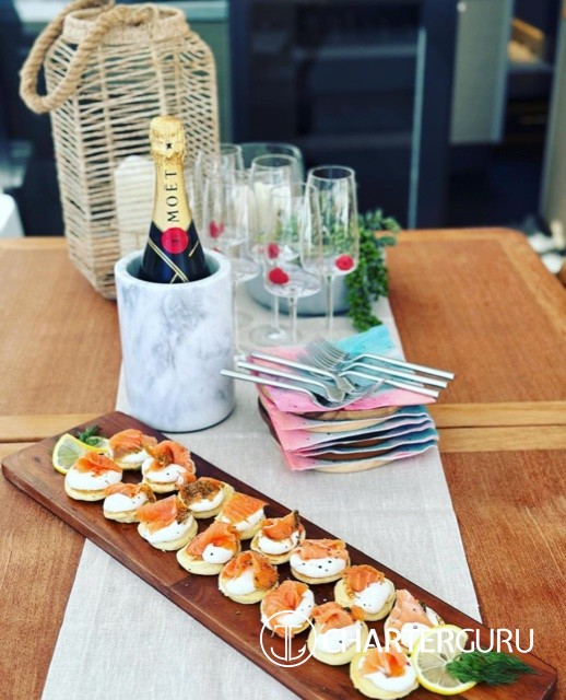 Guests arrive to the yacht at 5pm. Snacks and welcome drink served, this is not an open bar. Dinner is ashore on clients expense. Continental breakfast provided next morning. Vessel departs at noon.