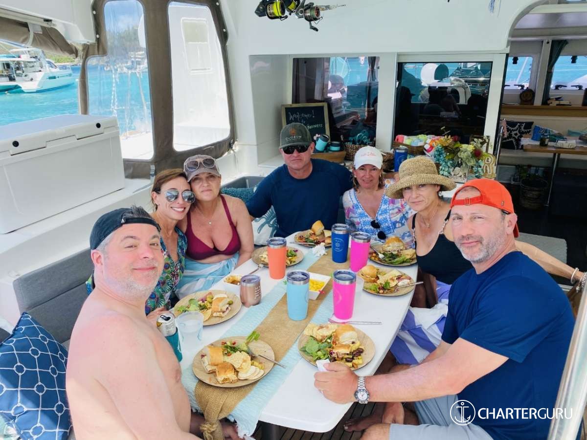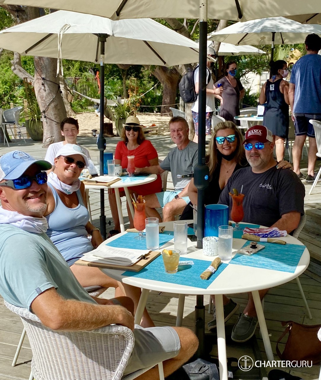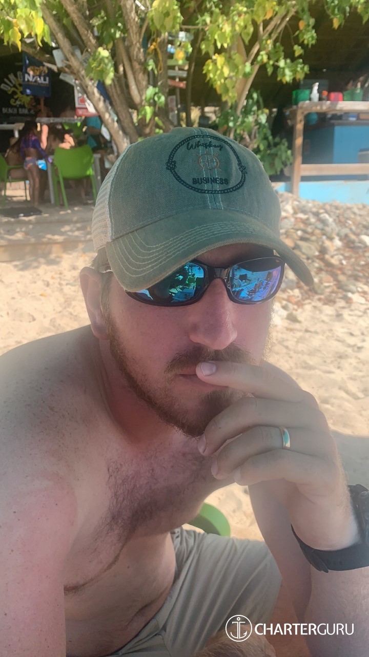 They explained our arrival in depth and as soon as we landed at the airport, with our taxi driver calling us to be sure we knew he was ready for us. The taxi ride was seamless and before we knew it, we were at the dock hopping on Whiskey Business. We cruised over to Christmas Bay and had a wonderful time meeting Wade, Tippee, and Bo in person and enjoyed a delicious first meal.