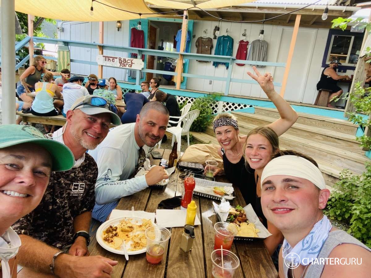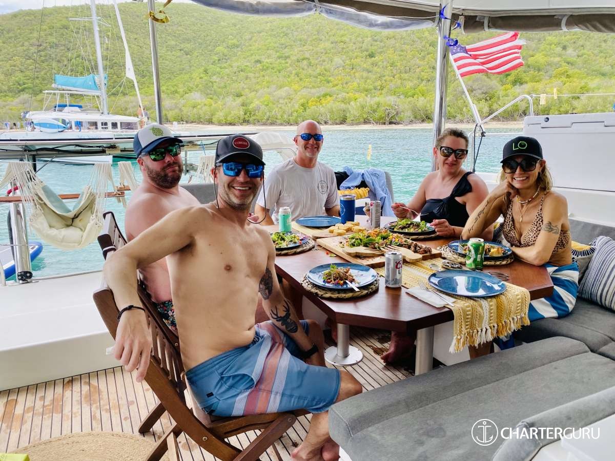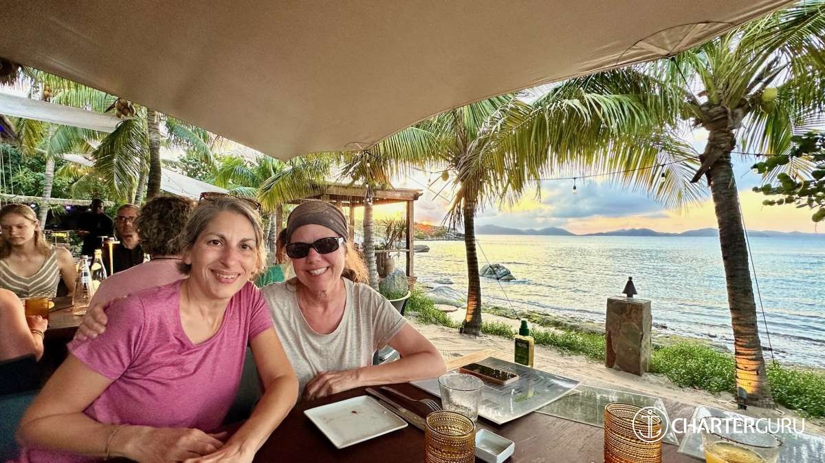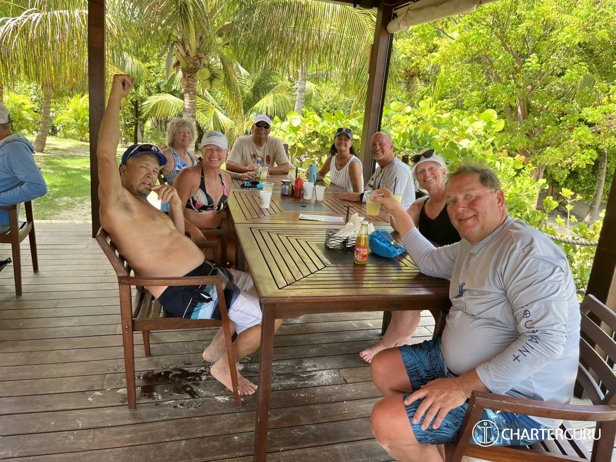 They explained our arrival in depth and as soon as we landed at the airport, with our taxi driver calling us to be sure we knew he was ready for us. The taxi ride was seamless and before we knew it, we were at the dock hopping on Whiskey Business. We cruised over to Christmas Bay and had a wonderful time meeting Wade, Tippee, and Bo in person and enjoyed a delicious first meal.