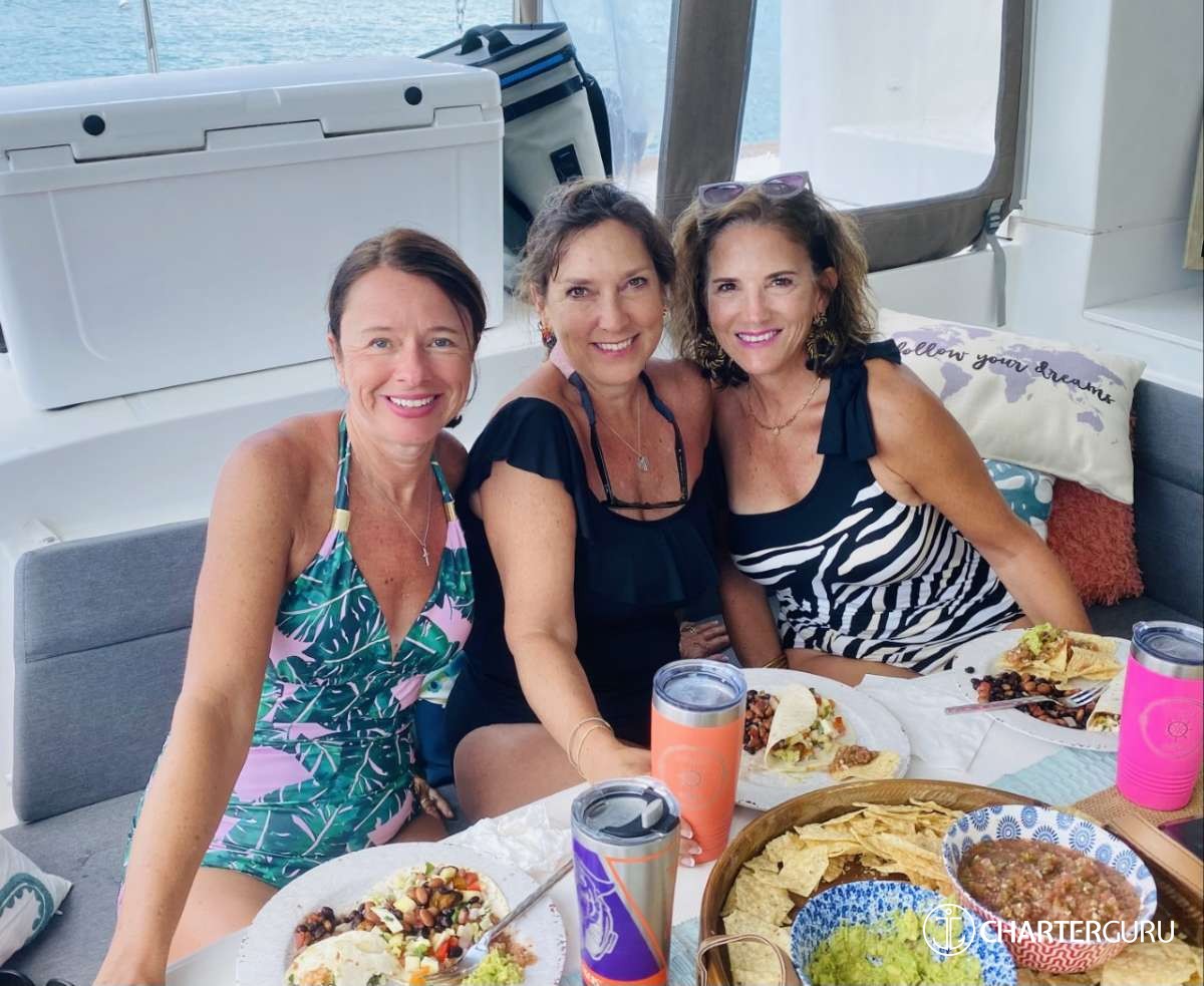 While Wade and Tippee were incredible, the boat was wonderful too! It was clean, incredibly well-organized, and had ample outside space - whether you wanted to be in the sun or in the shade. It is very well kept and had plenty of room for our party of six. Additionally, the boat is incredibly well stocked with koozies, microfiber beach towels, paddle boards, snorkel gear, and varying levels of SPF sunscreens.