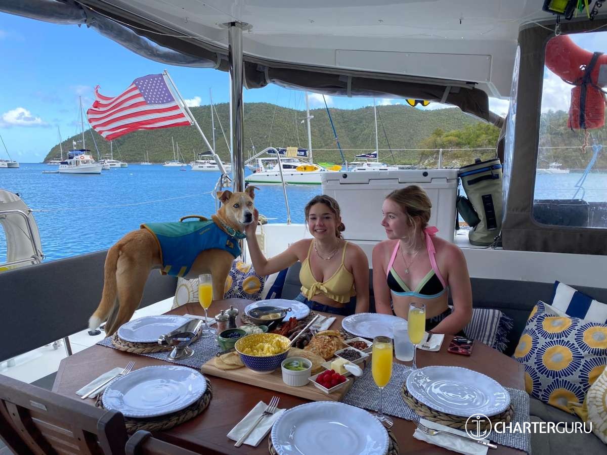 We chose the all inclusive option and are so glad we did. Tippee is an exemplary chef. She made magic happen in the galley. No matter whether breakfast, lunch, or dinner, we were never disappointed. The meals from the galley rival 5 star restaurants, thanks to Tippee’s expertise and innovations. Wade is an excellent captain. But, also, his ability to mix up a variety of delicious drinks is simply the best. Again, never disappointed. He was continually making sure we we had the equipment needed for all our aquatic adventures. And, Bo was a wonderful companion for our sailing adventure. Bo charmed us all, greeting us every morning with loving nudges and kisses.